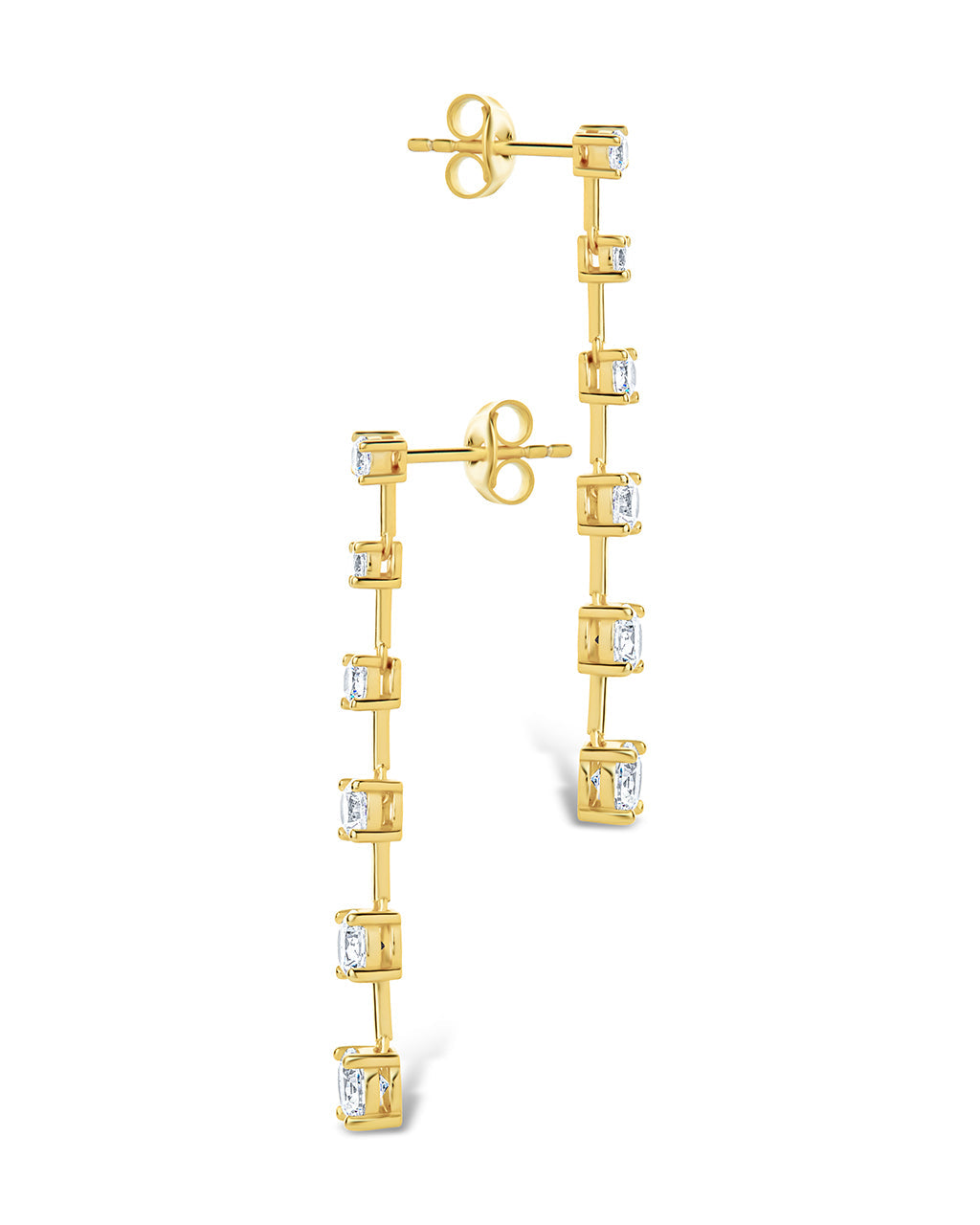 Elevate your style with our Sterling Silver Rue CZ Drop Earrings. Adorned with stationed cz drop studs and varying sizes of sparkling cz, these earrings exude elegance and luxury. Add a touch of sophistication to any outfit with these premium earrings.