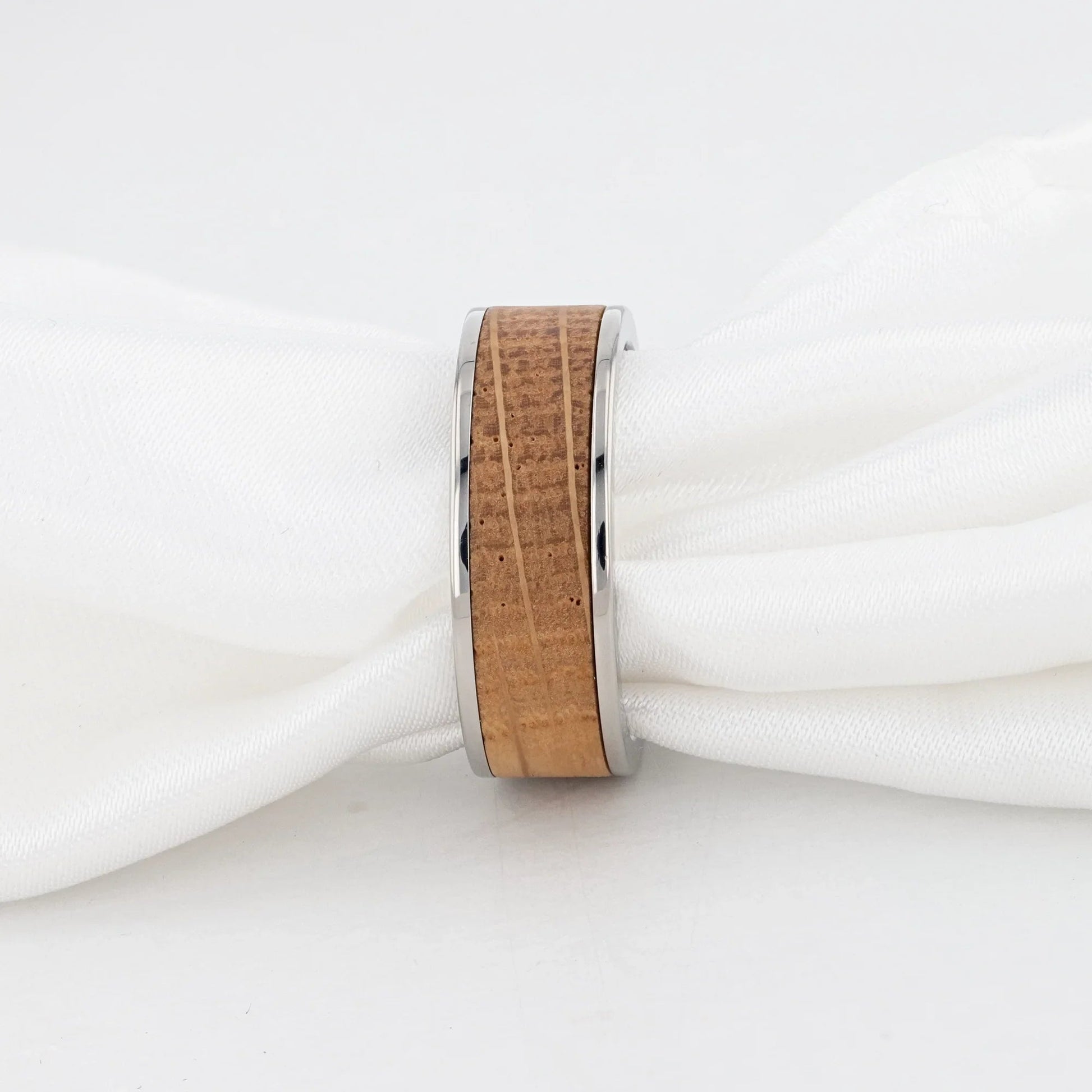STILL Whiskey Barrel Inlaid Titanium Men's Wedding Band With Flat Polished Edges Made From Genuine Whiskey Barrels - 8mm