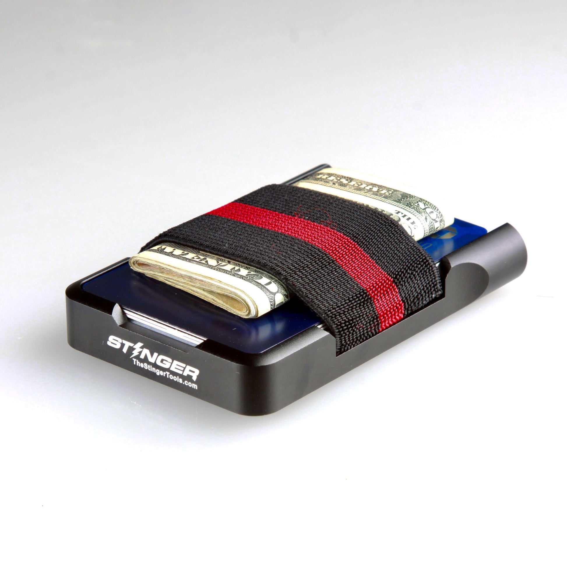- FUNCTIONAL & SLIM: The Stinger Minimalist Wallet holds up to 6 cards, ID, and driver's license without stretching out. Keep all of your daily-carry cards and cash in a super slim metal wallet that combines outdoor style, business style, and tactical style. The outside notch allows you to push out the cards easily.