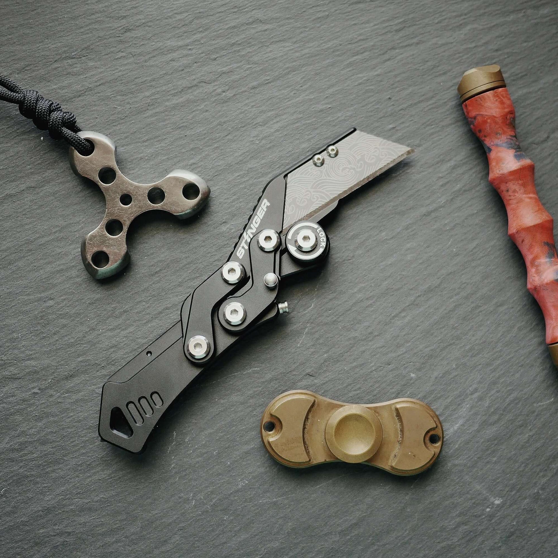 You can easily open and close the knife with one hand while keeping your other hand free. These knives can cut everything from corrugated packaging (including straps, tape, plastic, and twine) to more advanced construction cutting (drywall, roofing paper, shingles, shaving wood, landscape fabric, and more).