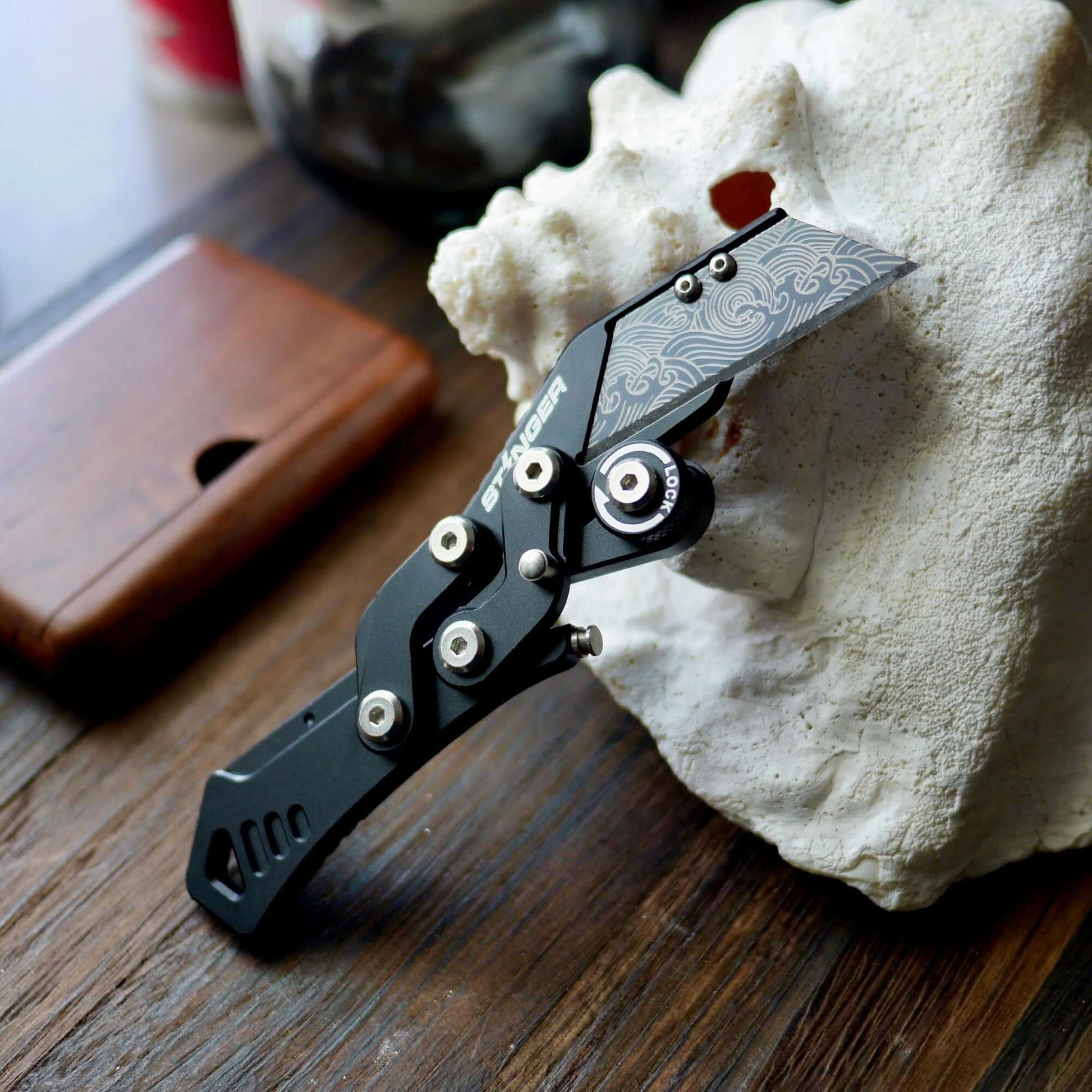 Minimal, functional, and sleek is the definition of the Gozilla Blade. The full opened length is only 6 inches and when closed, it stands at less than 4.5 inches in length and less than 0.75 inches in thickness. The miniature size of the box cutter means it can easily be hidden in any coin pocket, wallet, or attached to a set of keys. Weight: The ultralight weight of the Gozilla Blade is 2.3 oz.