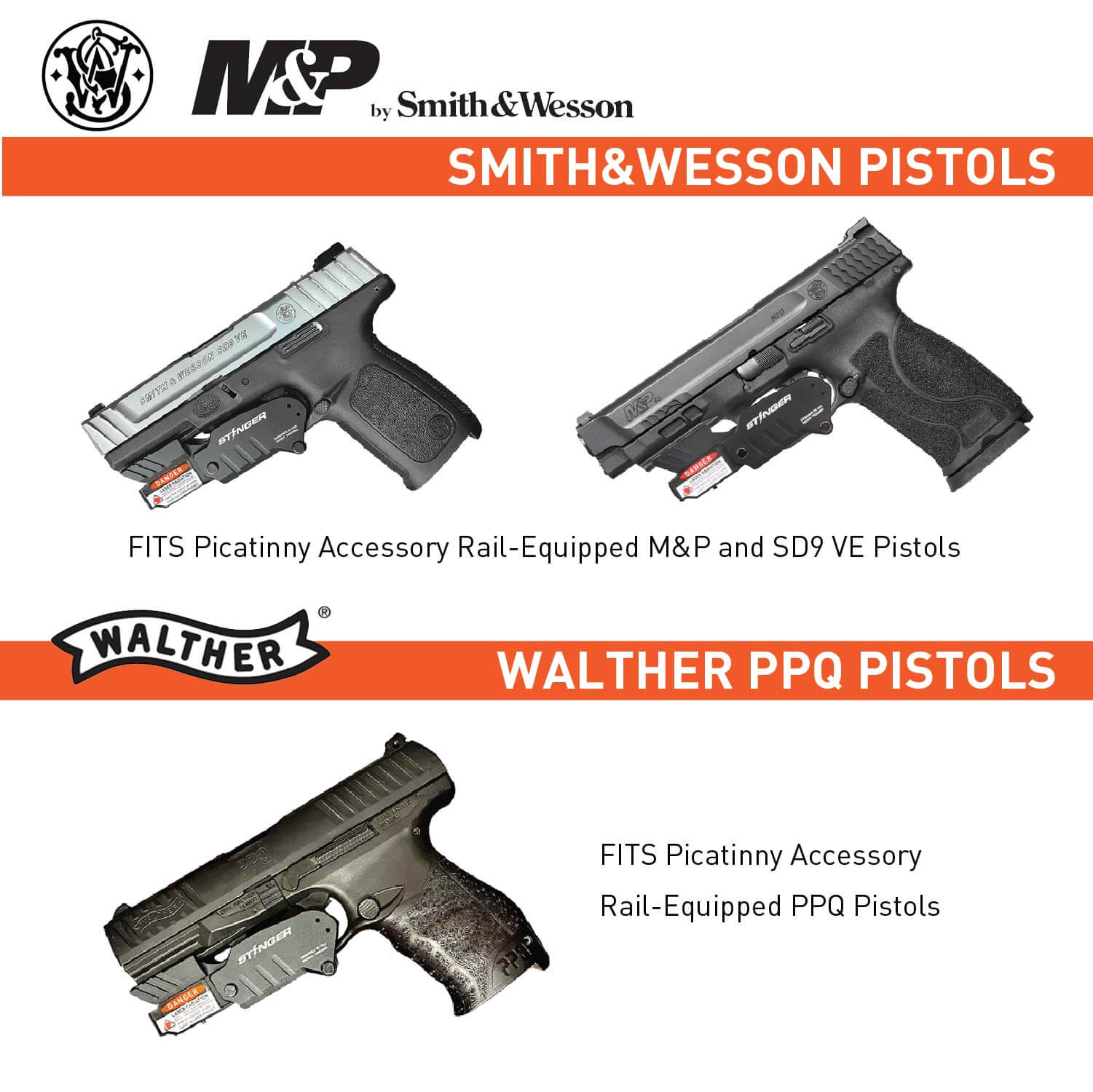 - Stinger Laser Sights for Handguns has a non-reflective low profile matte black finish that does not obstruct the aiming view. And it eliminates glare, making it easy to stay out of sight.