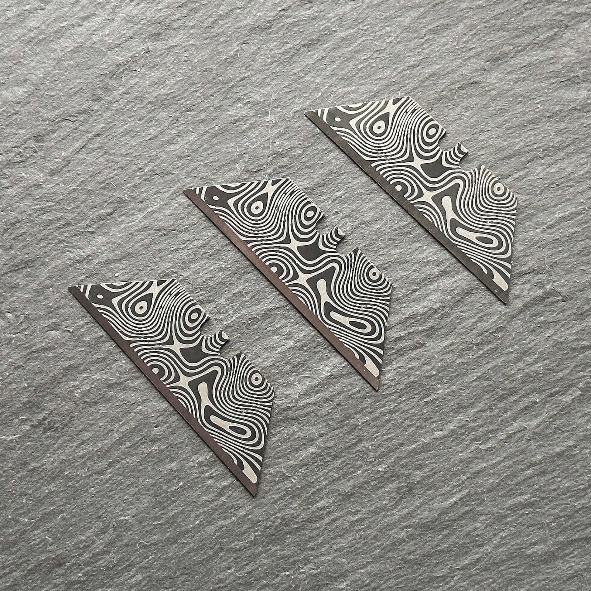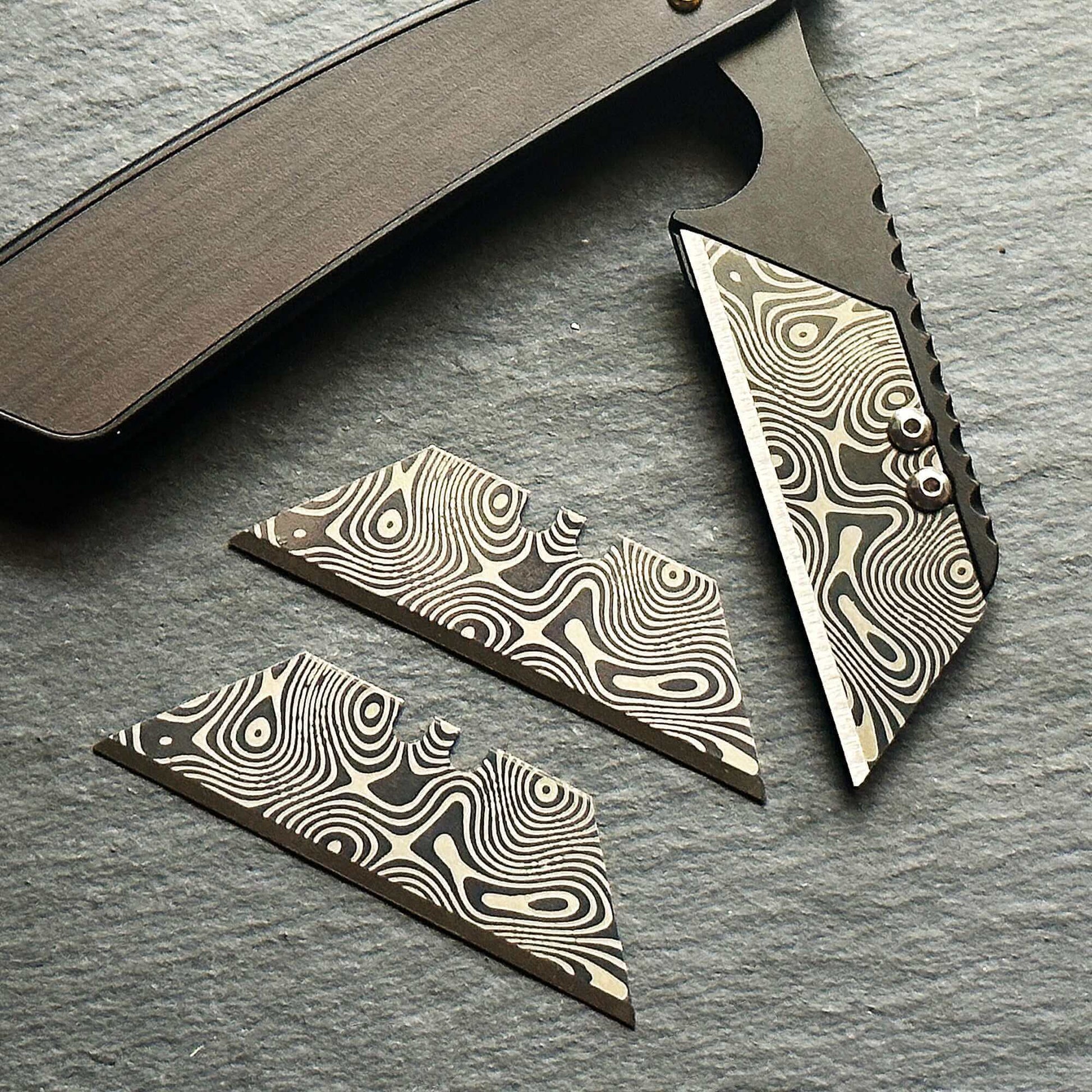 Stinger Laser Engraved Utility Razor Blades, Utility Knife Blades Replacement - Black Damascus Style (Trapezoid 3 pcs- Black)