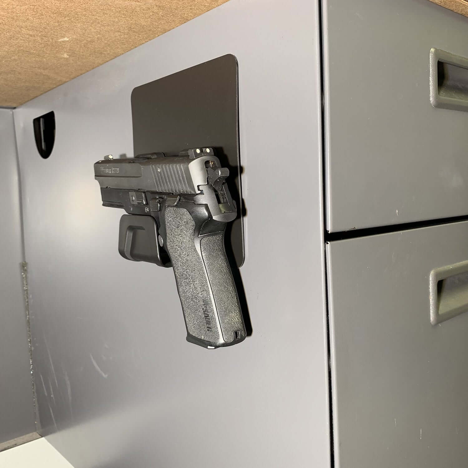 - MOUNT ANYWHERE – Our gun mount magnets are beautifully designed to mount anywhere with a flat surface. The compact 4.4”L x 1.75”W x .3.5”H design means you can fit them in tight spaces for optimal camouflage. Install it in your closet or bedside nightstand, under your office desk, on the wall in the garage, in your gun safe, or anywhere inside your car or truck. Put one wherever you may need gun storage.