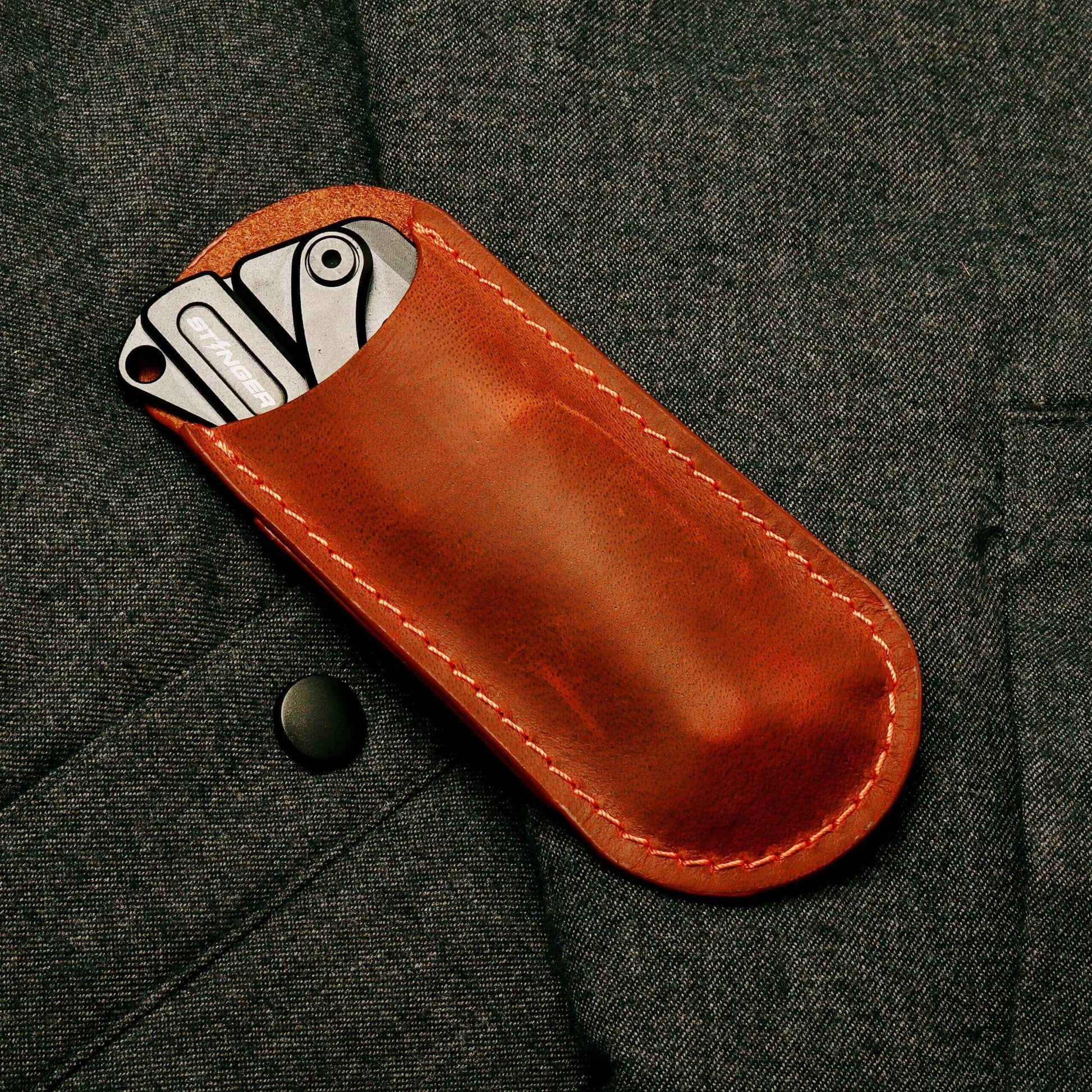 Stinger Olfa Evolution Blade with Leather Pouch, Folding Pocket Knife, Utility Knife - Matte Black