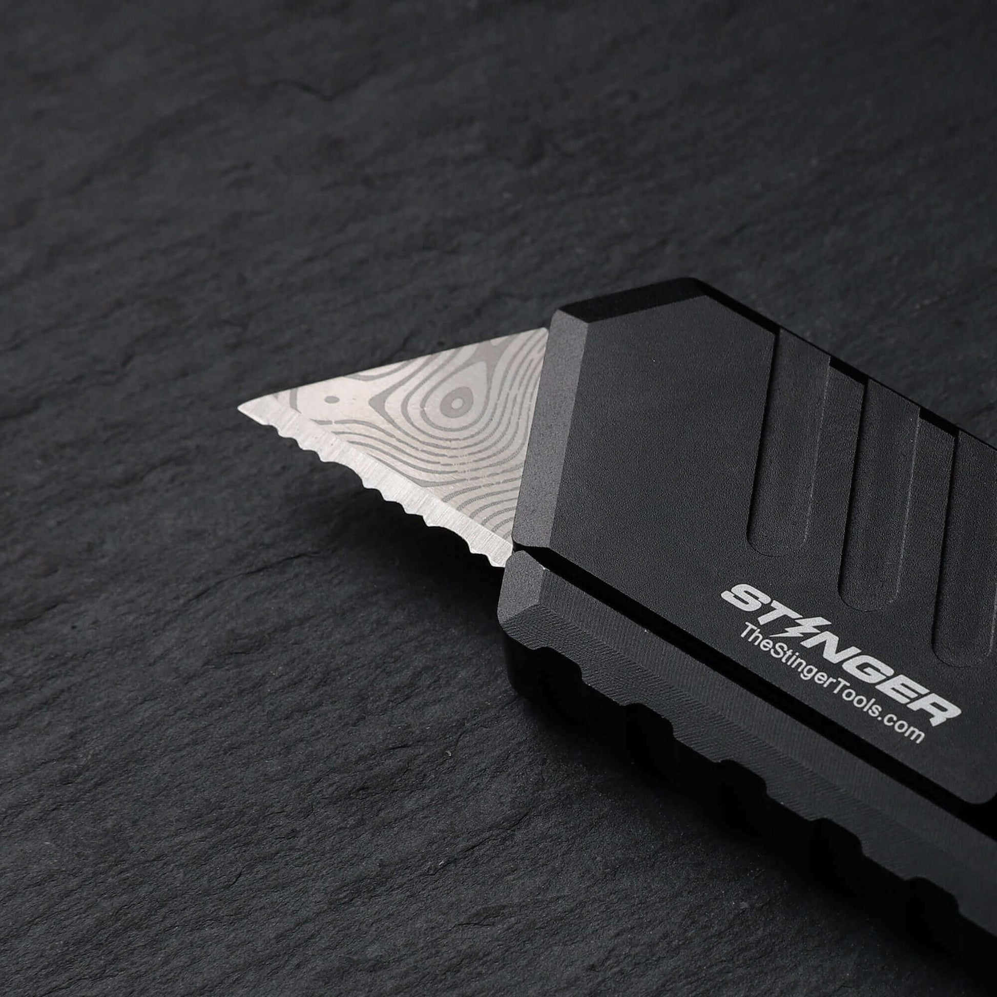 - Package includes 3 pcs Stinger P01 Serrated Utility Blade (Laser Engraved Damascus Style)