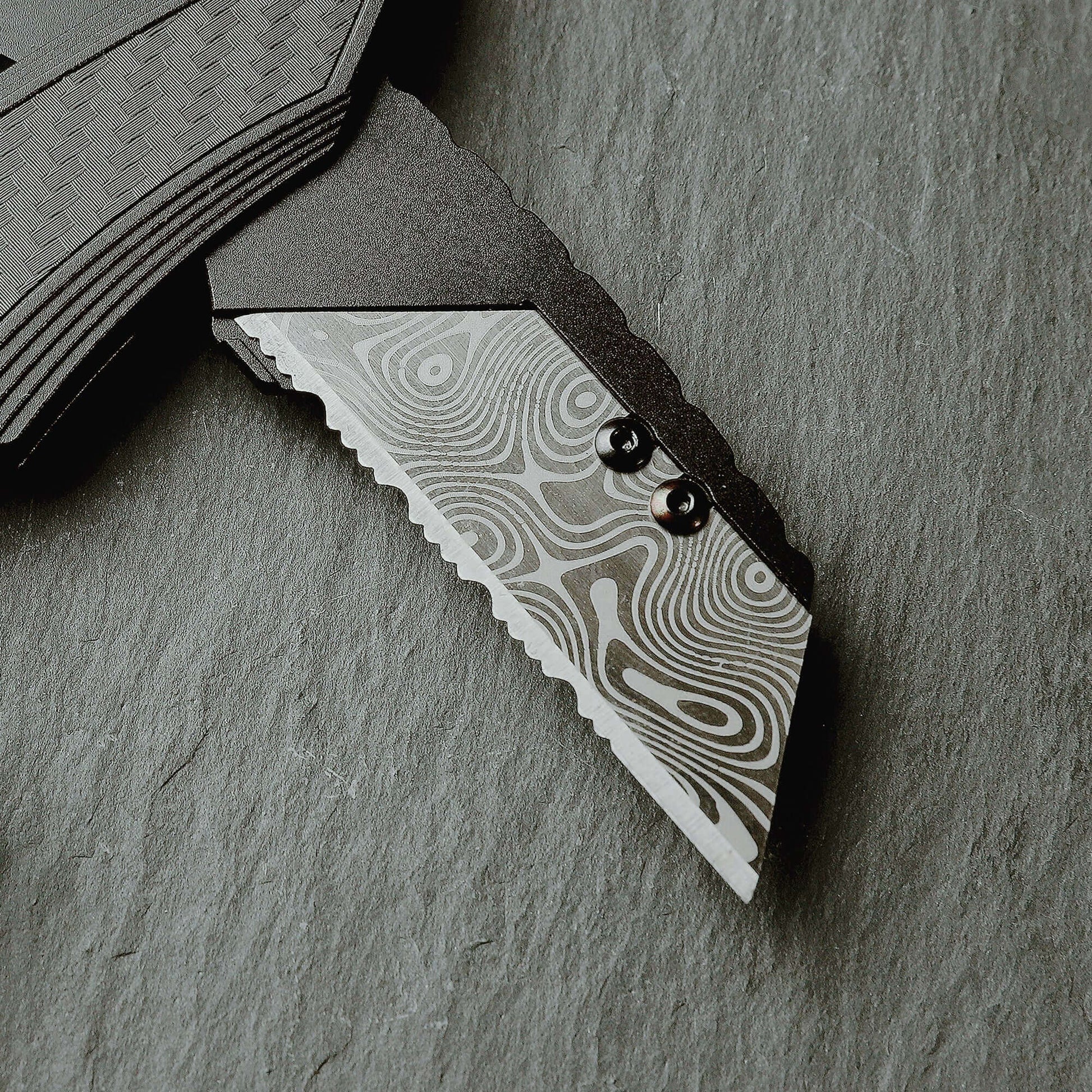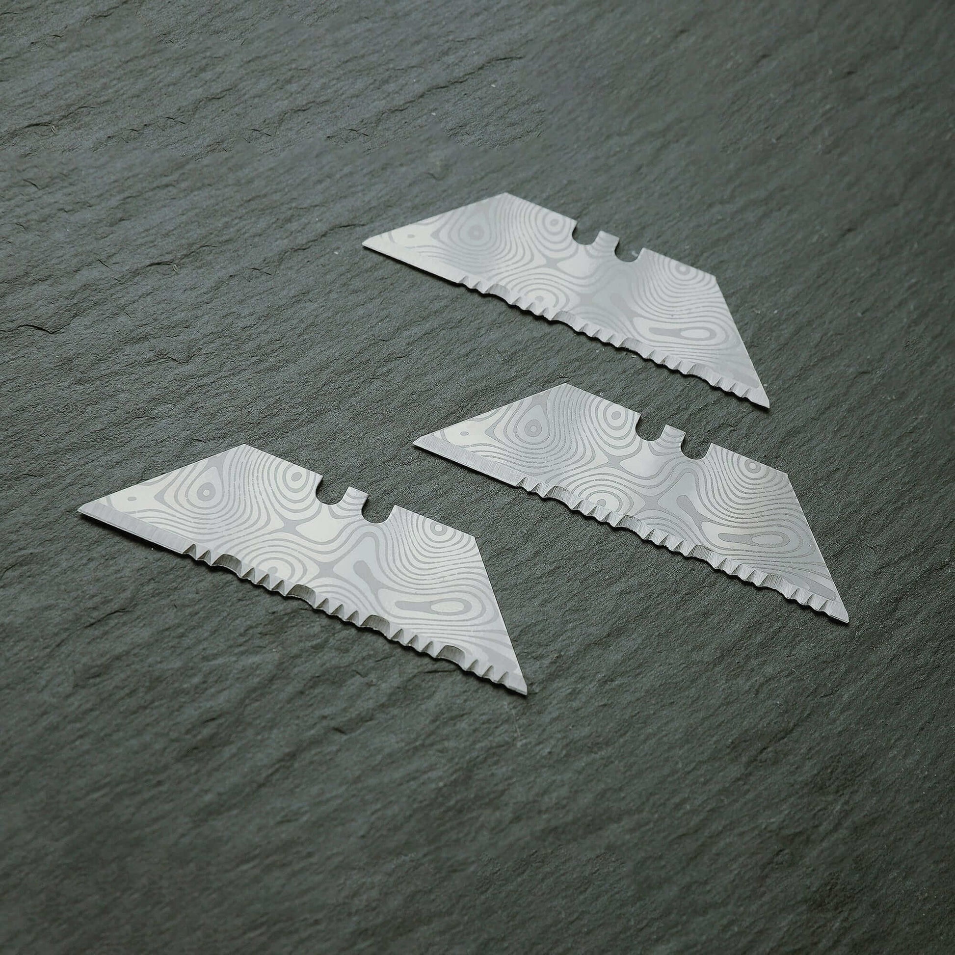 Stinger P01 Partially Serrated Utility Blade Replacement - Laser Engraved Silver Damascus Style (3 pcs)