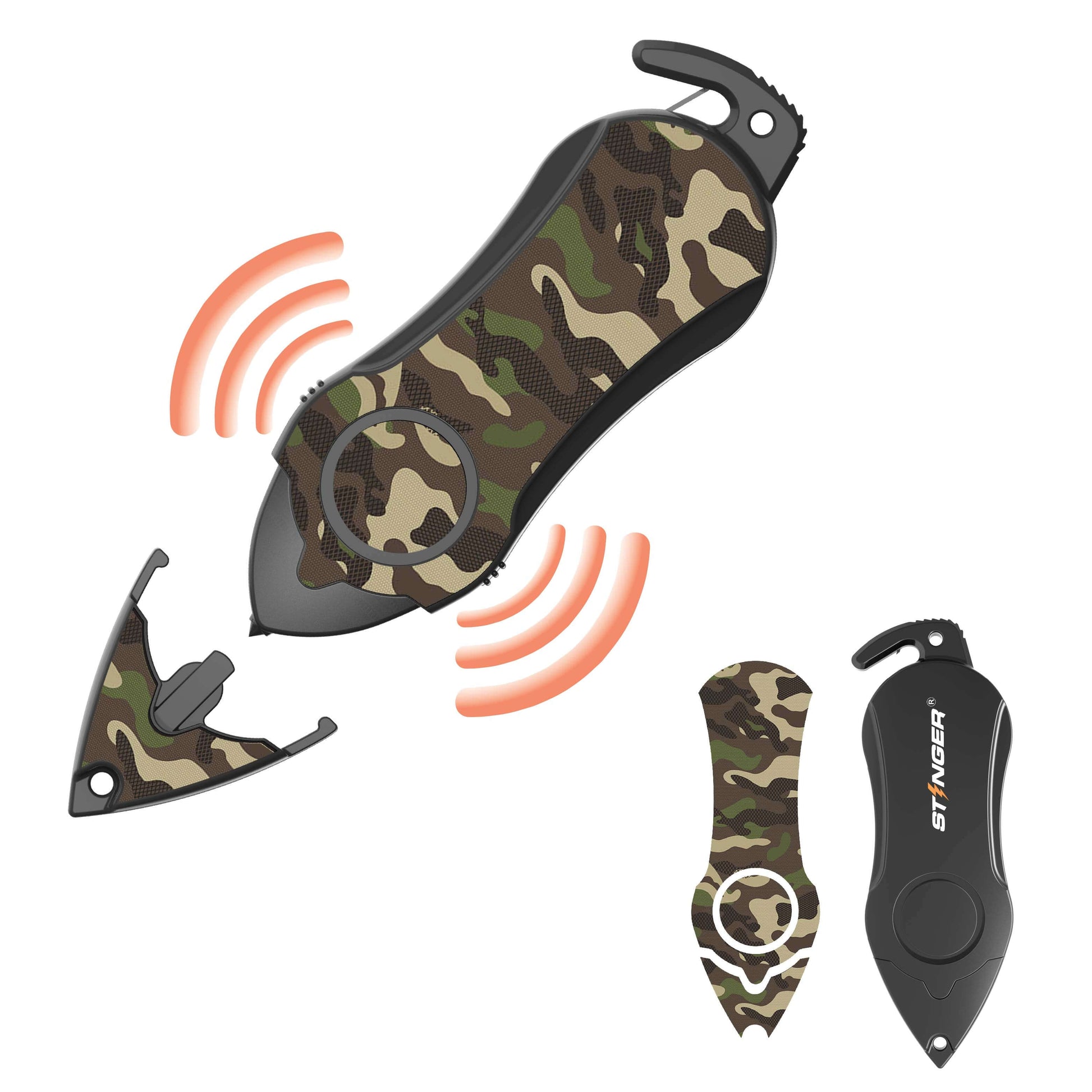 Stinger Personal Safety Alarm Keychain Emergency Tool: Siren Alarm, Seat Belt Cutter, Glass Breaker (Camouflage Green)