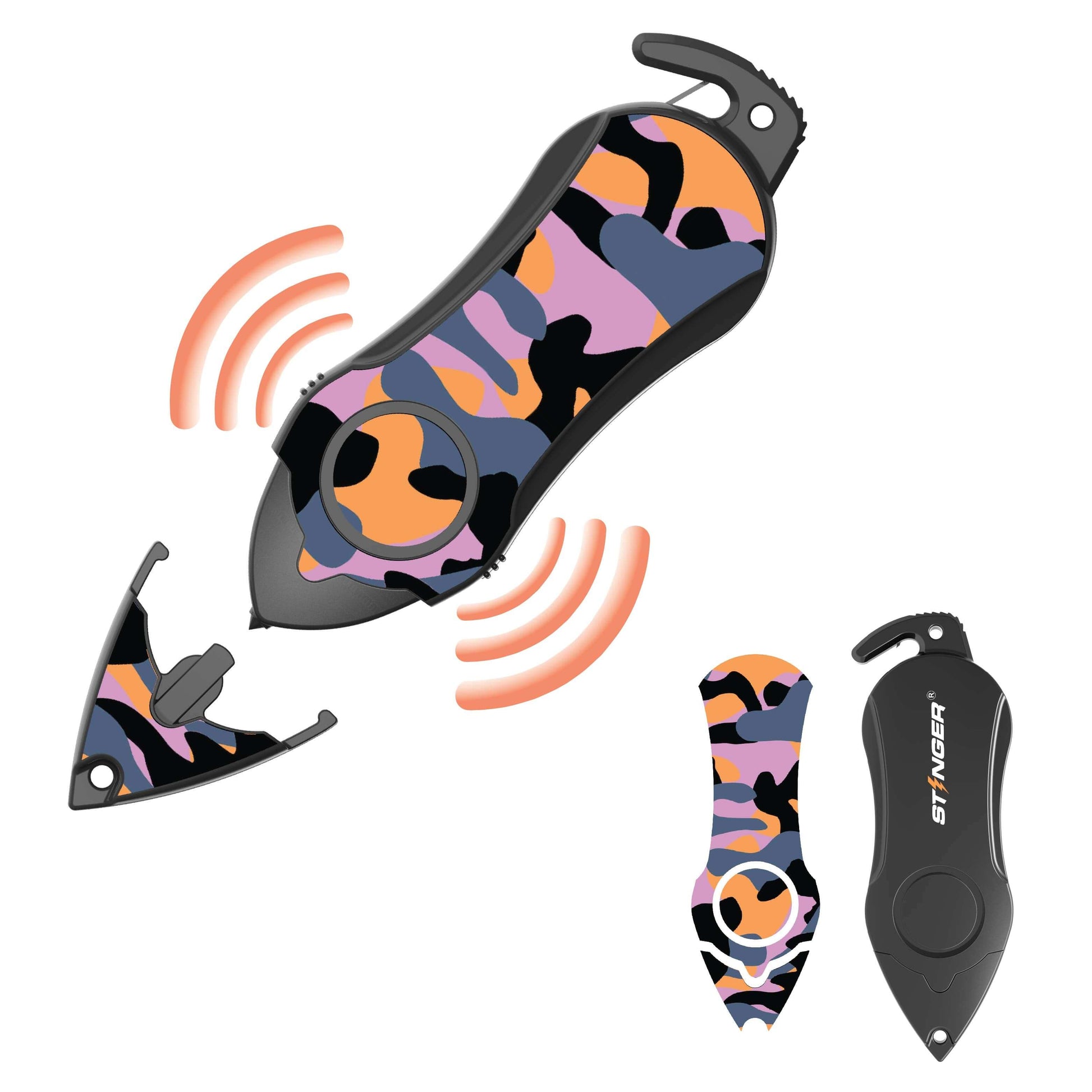Stinger Personal Safety Alarm Keychain Emergency Tool: Siren Alarm, Seat Belt Cutter, Glass Breaker (Camouflage Purple)