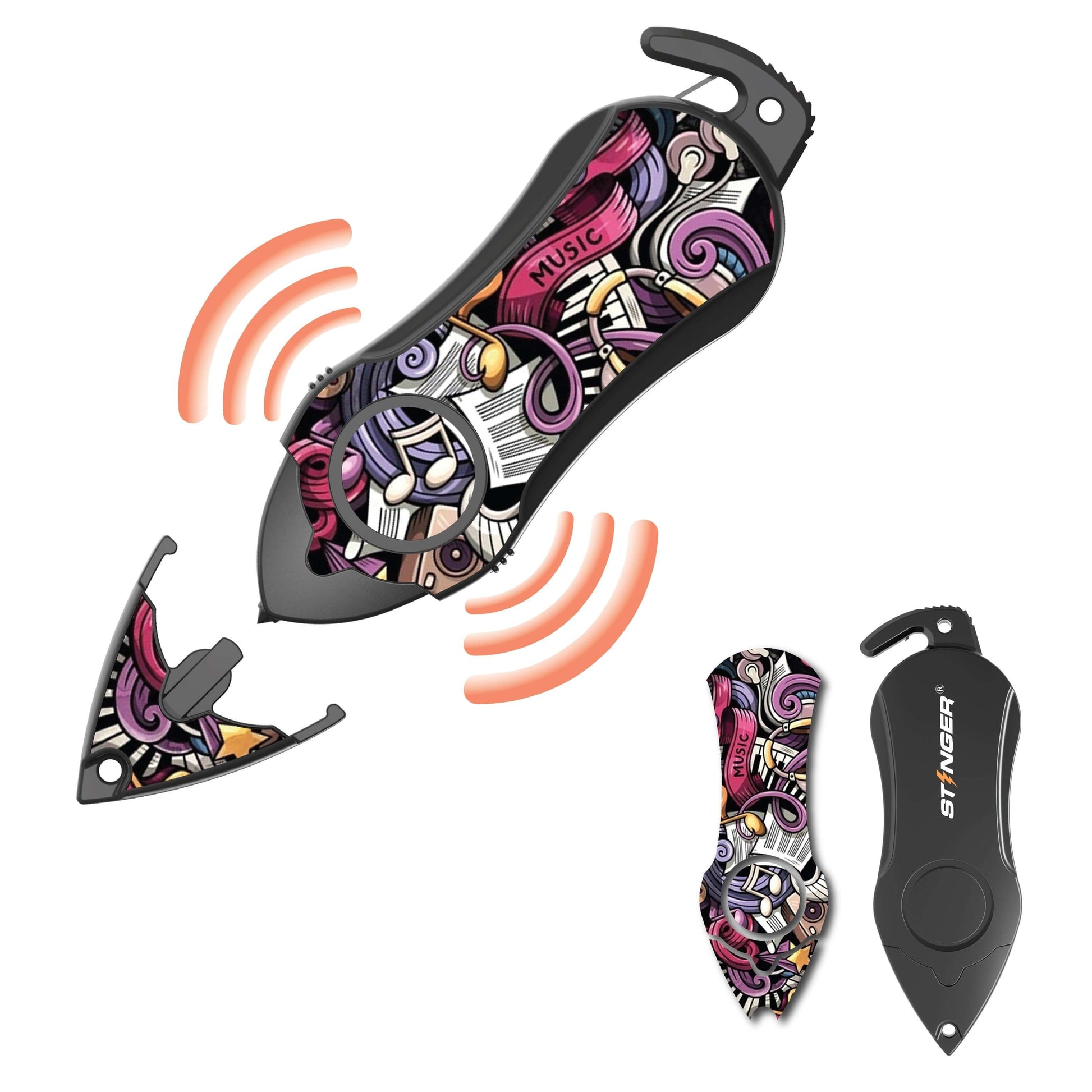 Stinger Personal Safety Alarm Keychain Emergency Tool: Siren Alarm, Seat Belt Cutter, Glass Breaker (Music)