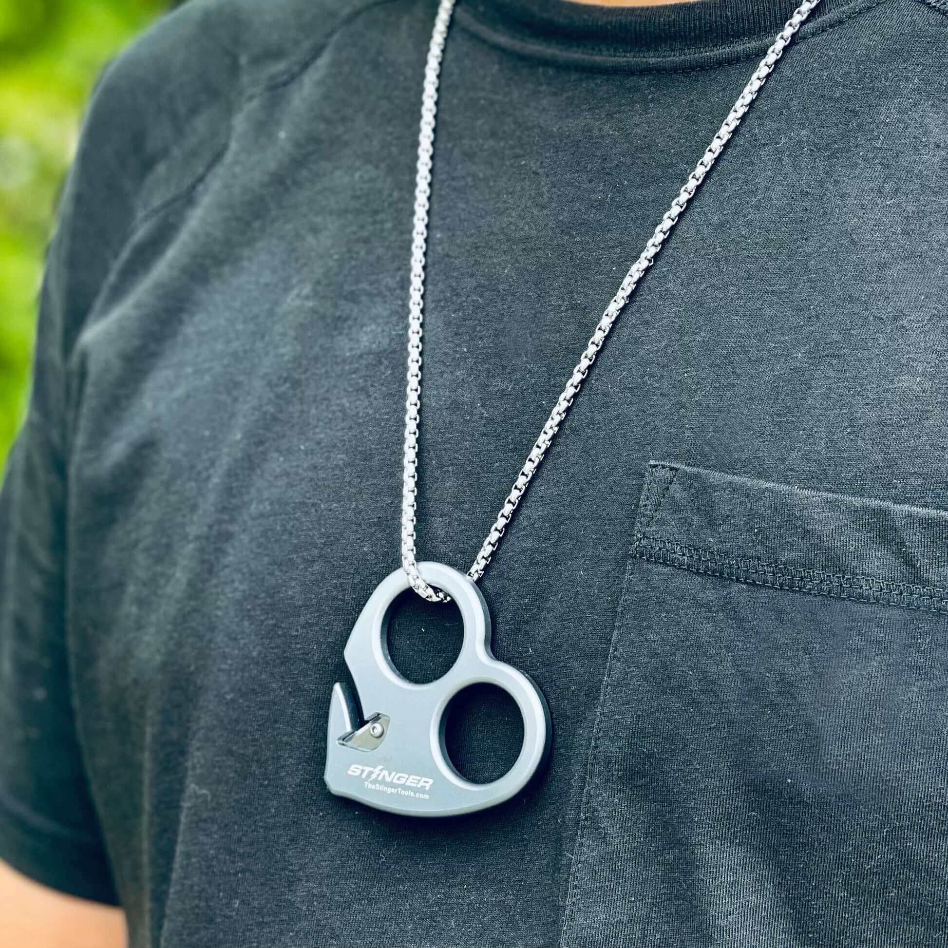 Hardened steel glass breaker for quickly shattering the car windows and escaping from the emergency. The Stinger will only break tempered glass.