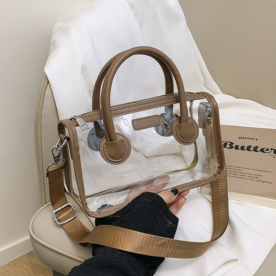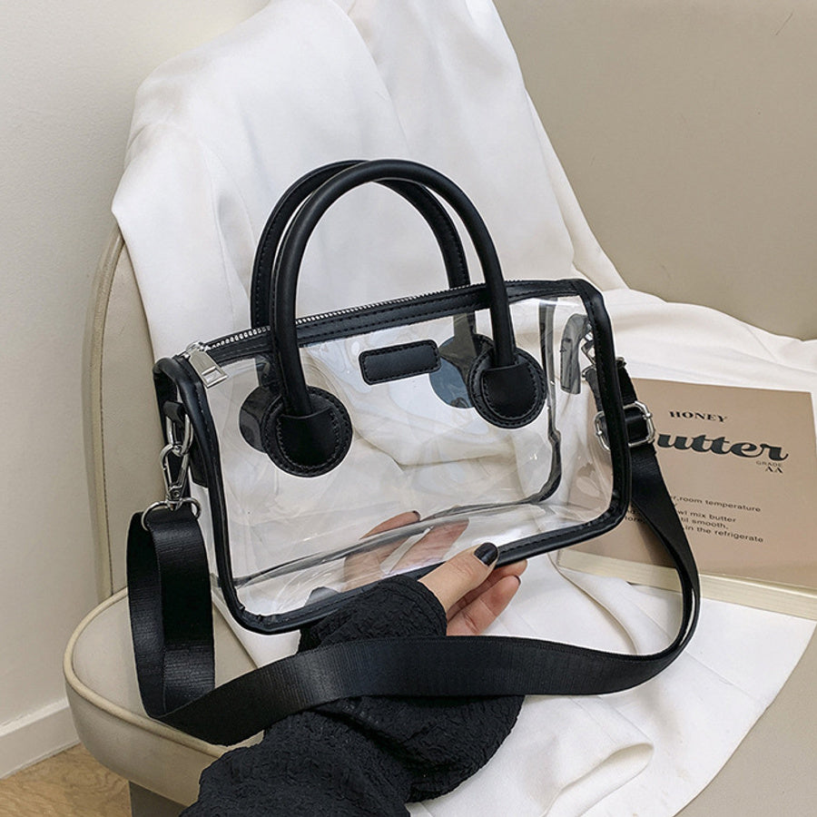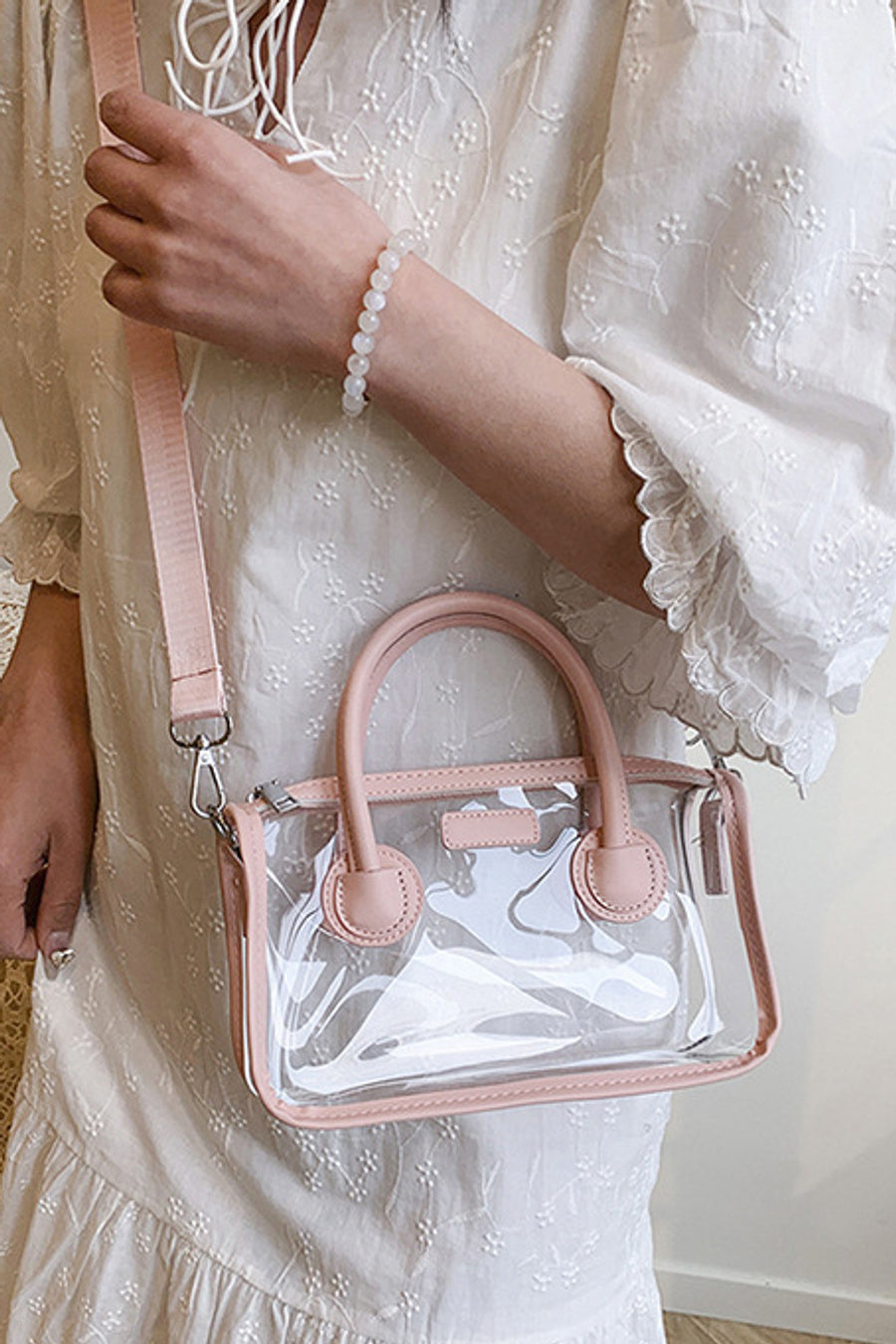 Stylish new 6 colors pu stitching pvc zip-up crossbody