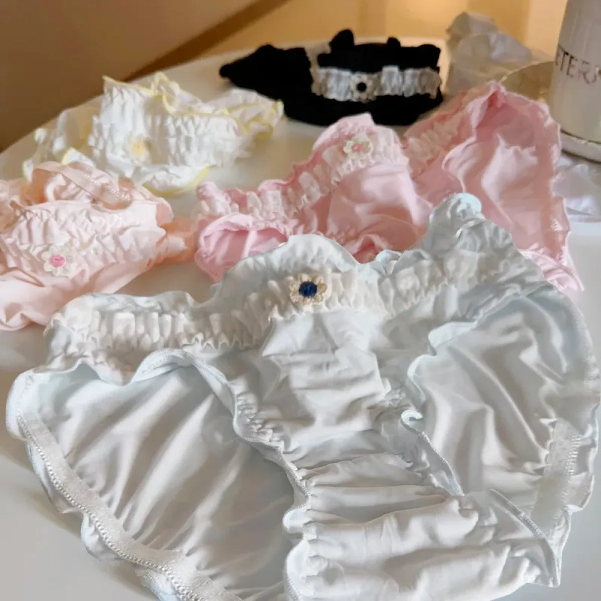 Sweet Girl Ruffle Lace Panties – Ice Silk Mid-Waist Cotton Briefs