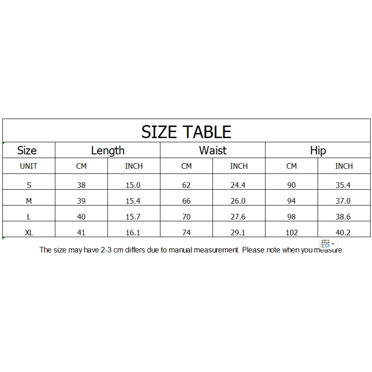 | Size | Length (cm/in) | Waist (cm/in) | Hip (cm/in) |