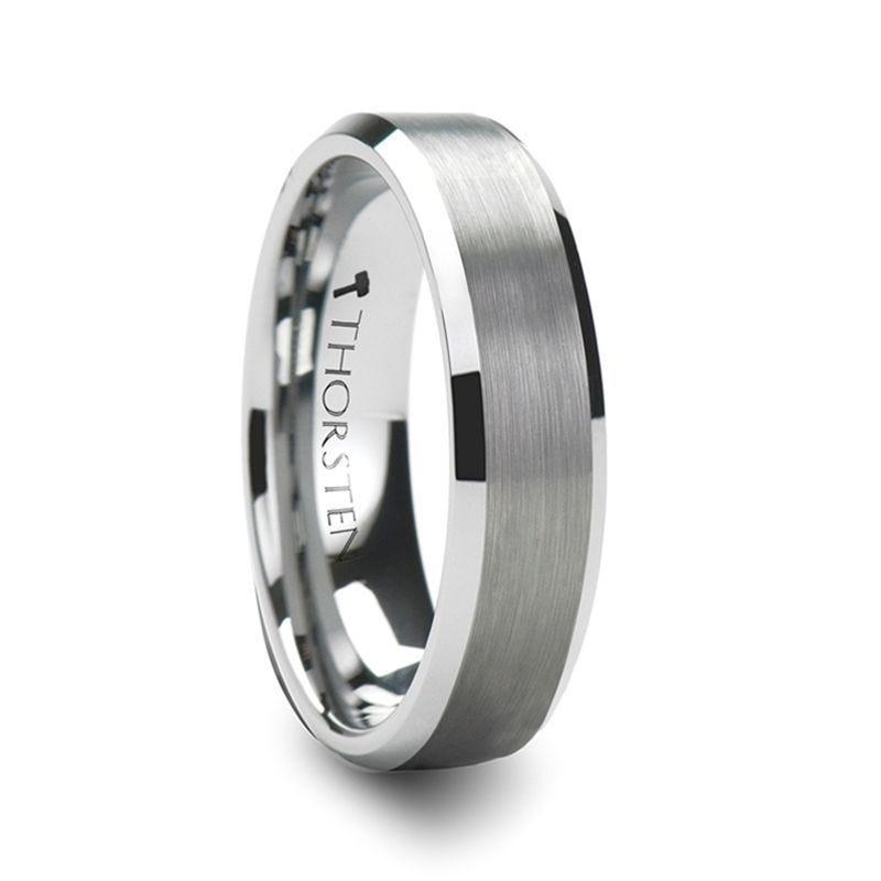 SYLVIA Beveled Edge Tungsten Wedding Band with Brushed Center - 4mm - 6mm