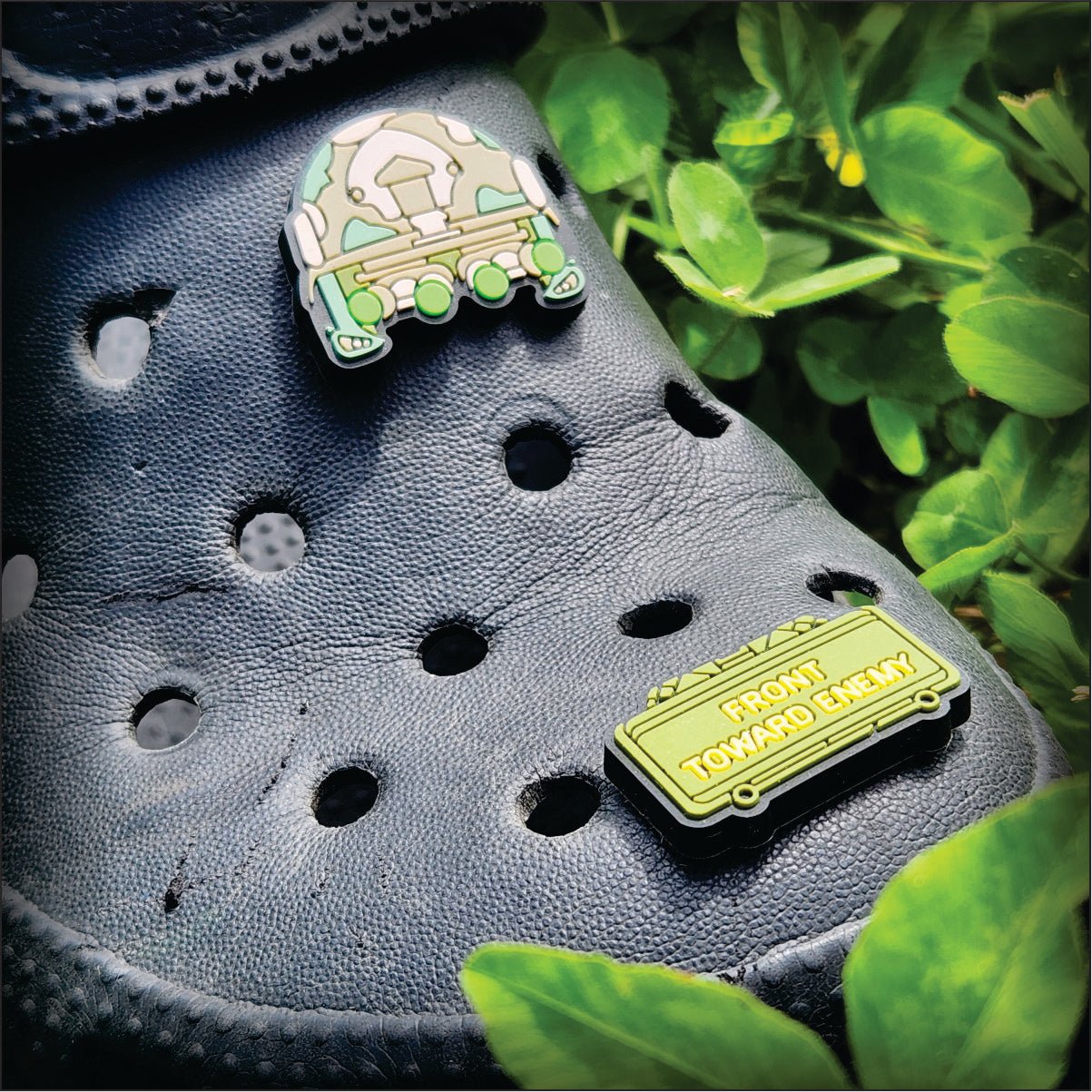 Introducing our Tactical Morale Shoe Charms – rugged, badass additions that elevate your clogs to new levels of coolness. These little beasts are the ultimate companions for your footwear, adding a tough edge to your every step.
