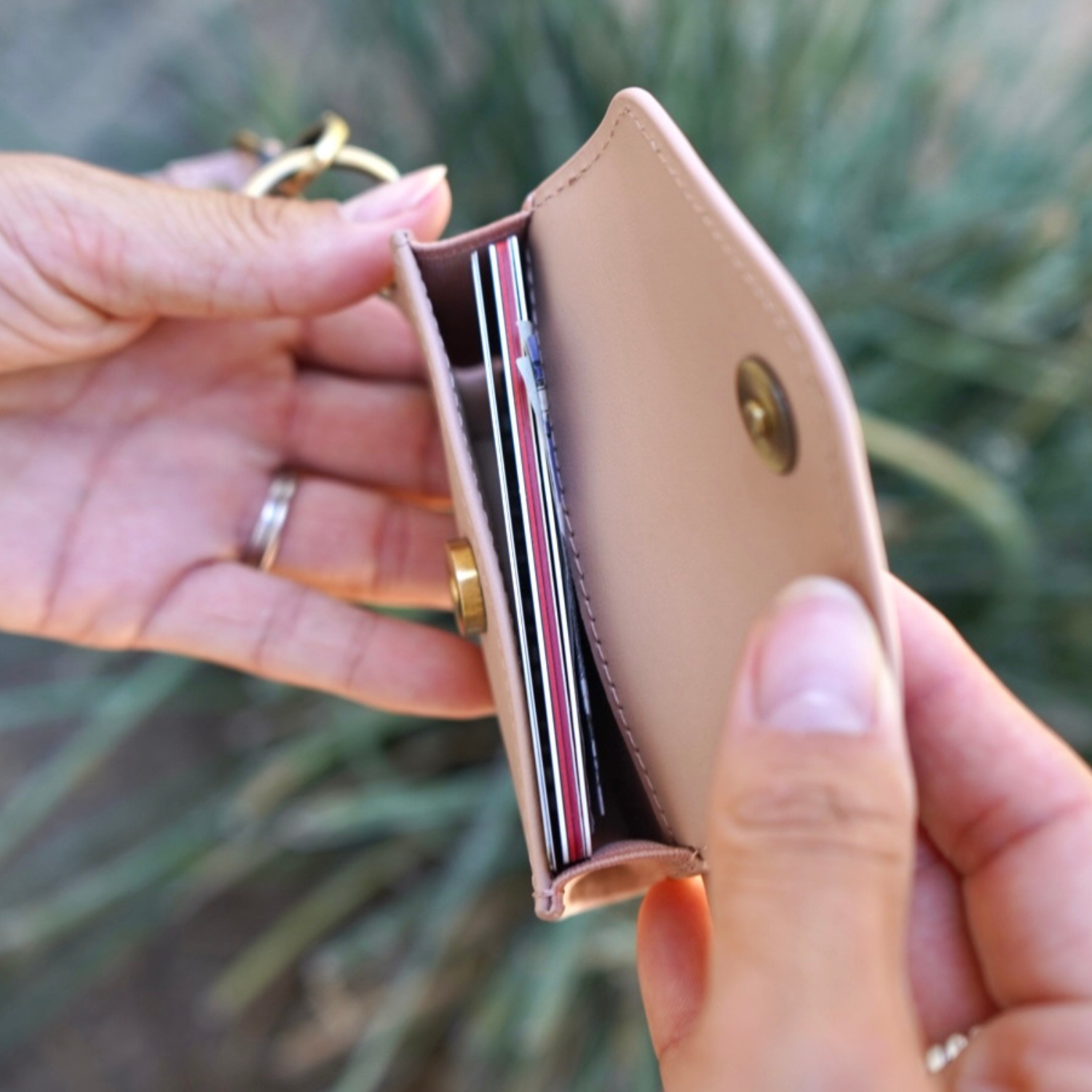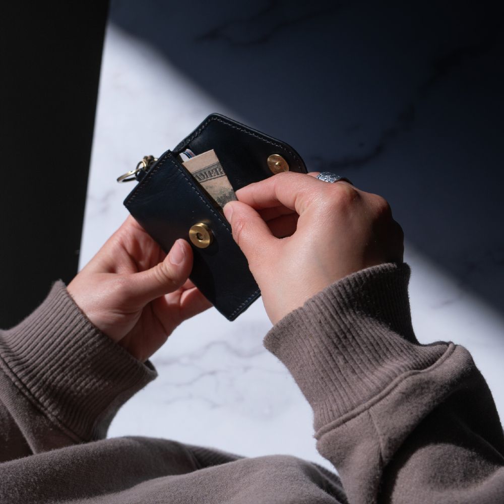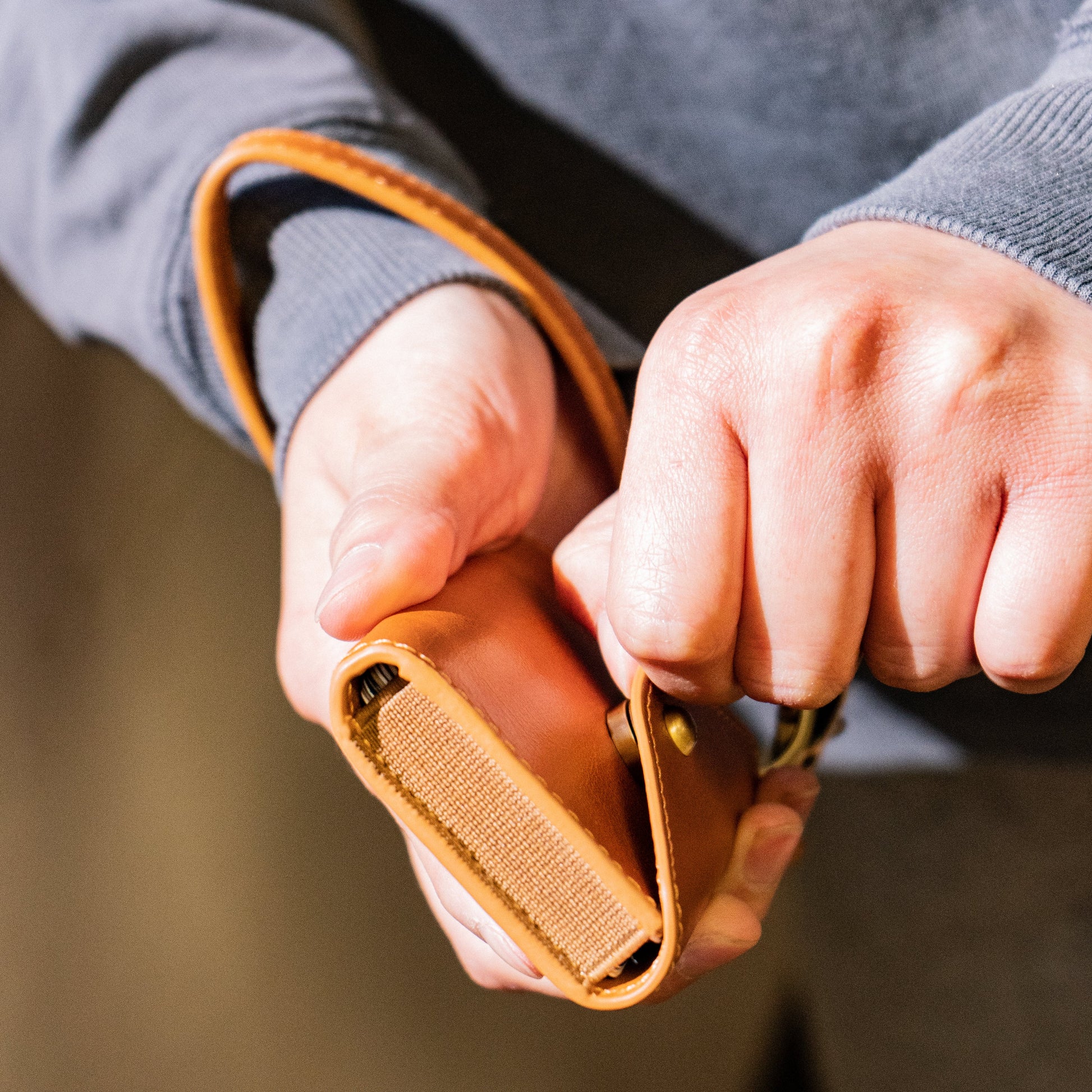 Made of our premium full-grain leather, The Poppy is a compact, stylish option with brass hardware and expanding sides. It conveniently holds up to 10 cards and cash with added flair. Go hands-free with the wrist lanyard, while the magnetic snap button allows for quick access to your cards. It’s ideal for the on-the-go, multitasking minimalist.