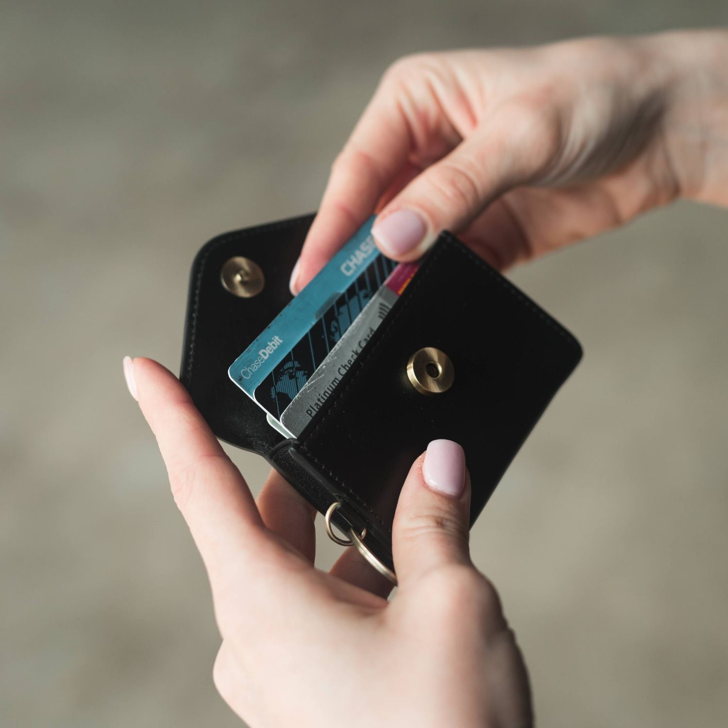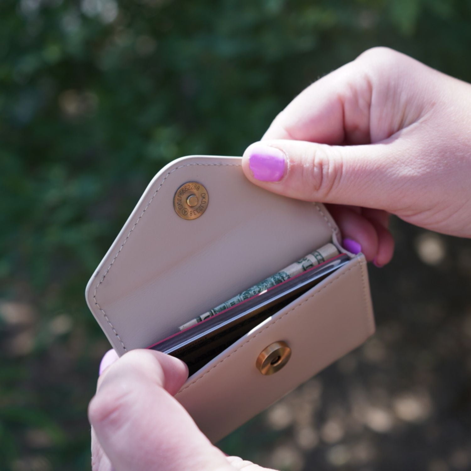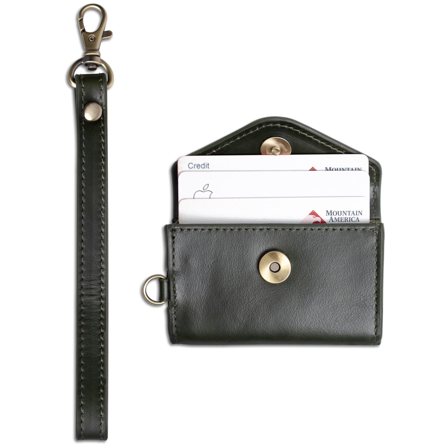 Made of our premium full-grain leather, The Poppy is a compact, stylish option with brass hardware and expanding sides. It conveniently holds up to 10 cards and cash with added flair. Go hands-free with the wrist lanyard, while the magnetic snap button allows for quick access to your cards. It’s ideal for the on-the-go, multitasking minimalist.