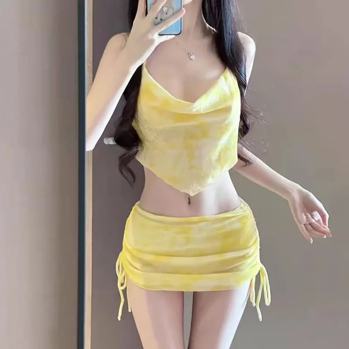 Tie Dye Halter Bikini Set – Kawaii 3pc Swimsuit with Mini Skirt