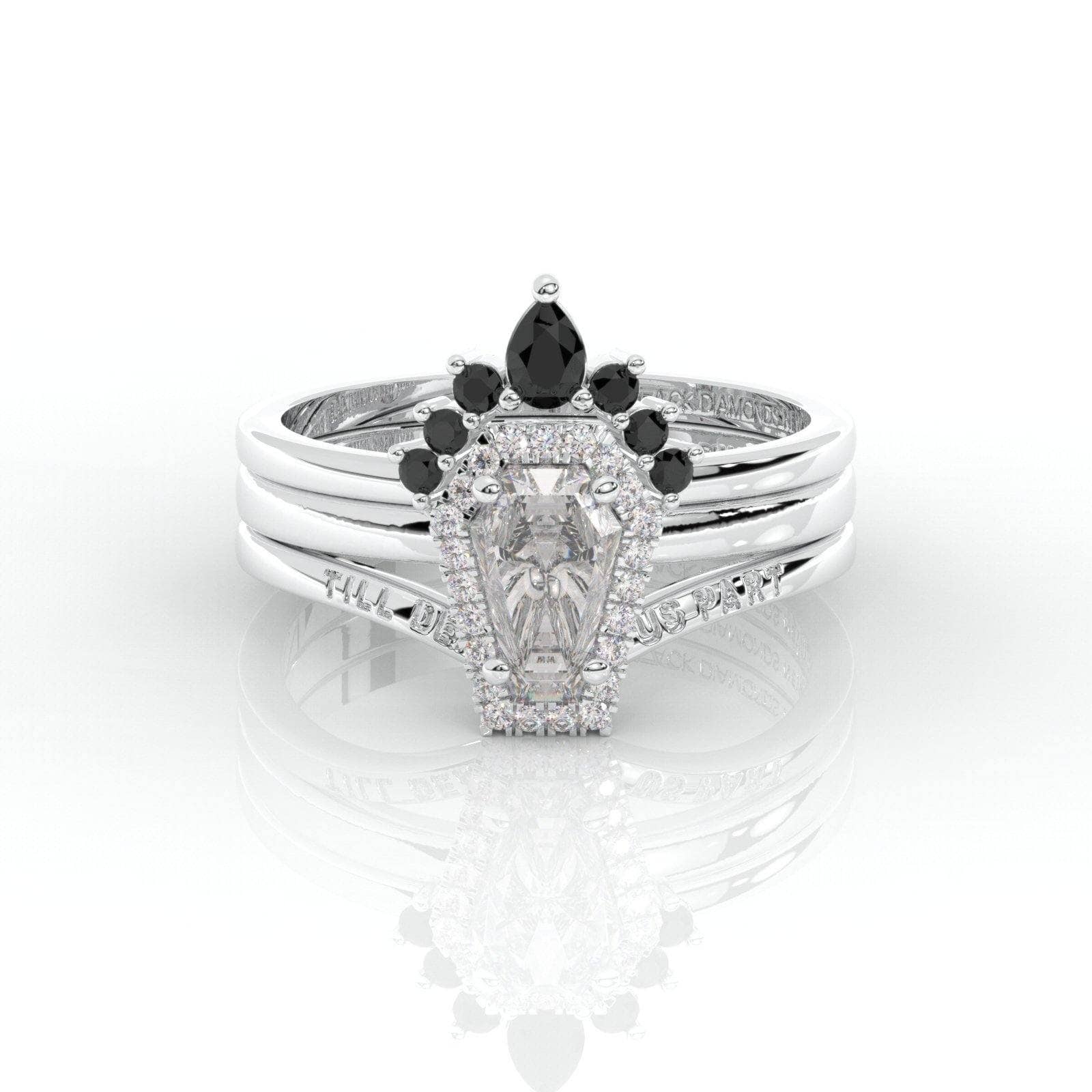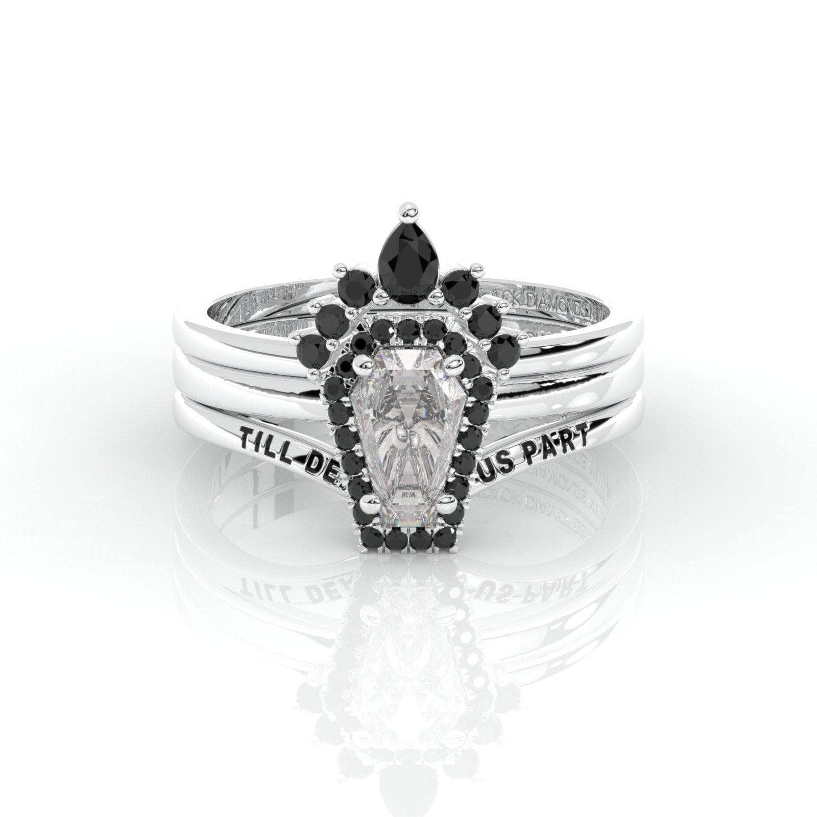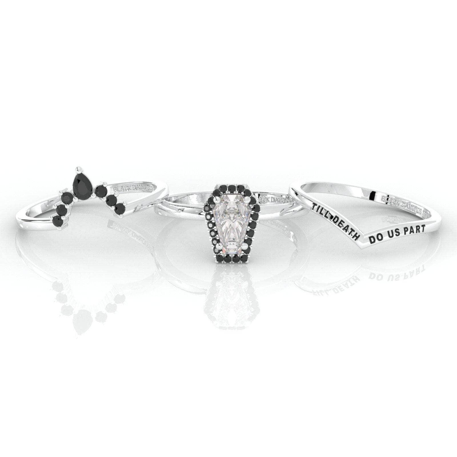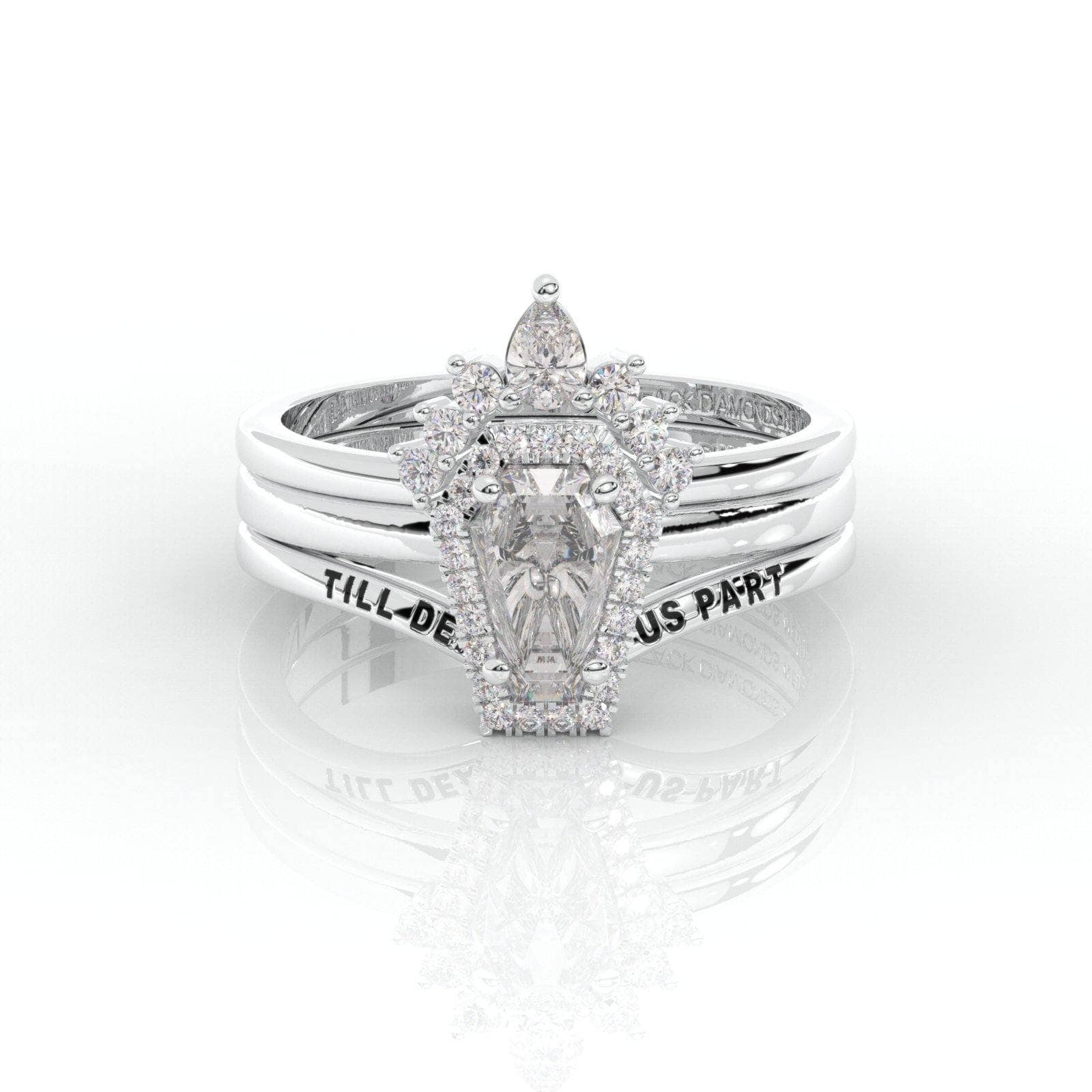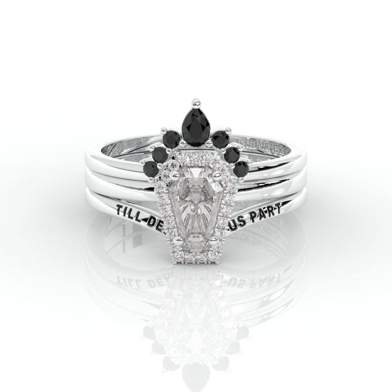 Till Death Do Us Part Rings- Rare Coffin Cut Diamond 14k White Gold Ring Set