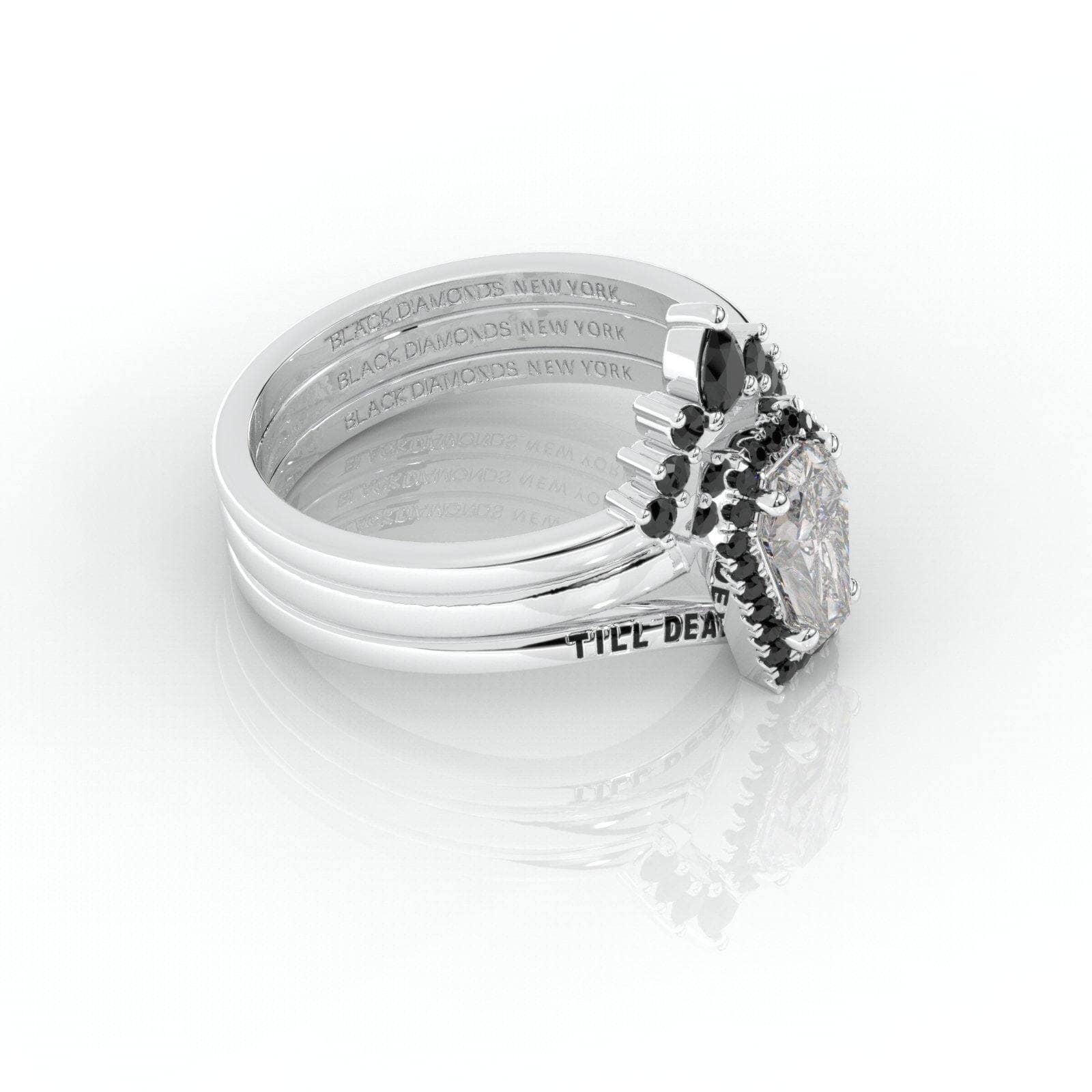 Indulge in the ultimate symbol of everlasting love with these immaculately crafted Till Death Do Us Part Rings. Designed to perfection, this set features durable 14k white gold and sustainable lab-grown diamonds, meticulously handcrafted and faceted by New York's renowned Black Diamonds designer. Every detail is expertly engineered to capture the essence of a timeless love story. When the stars align and everything falls into place, there's nothing more exquisite than this ring set. Give your love the best of the best with this one-of-a-kind masterpiece.