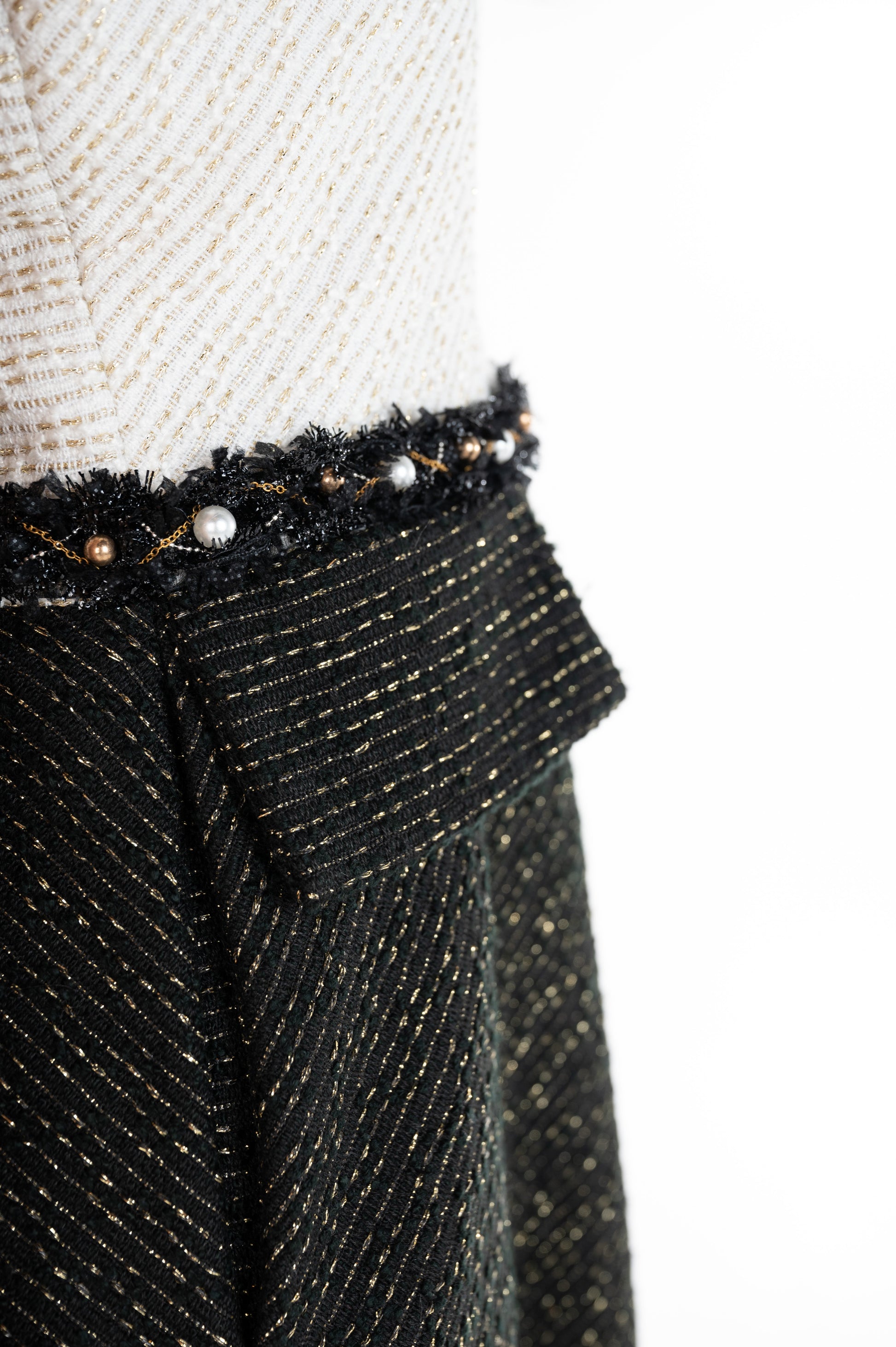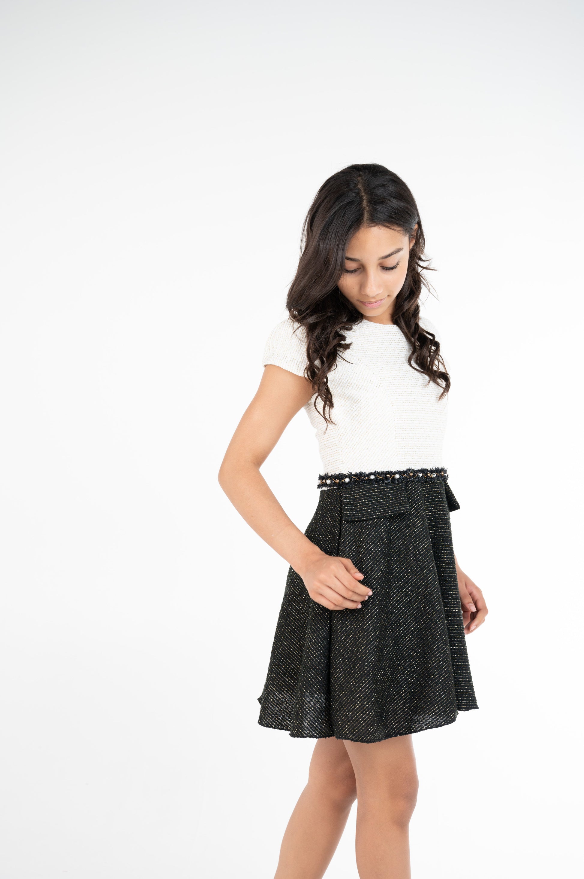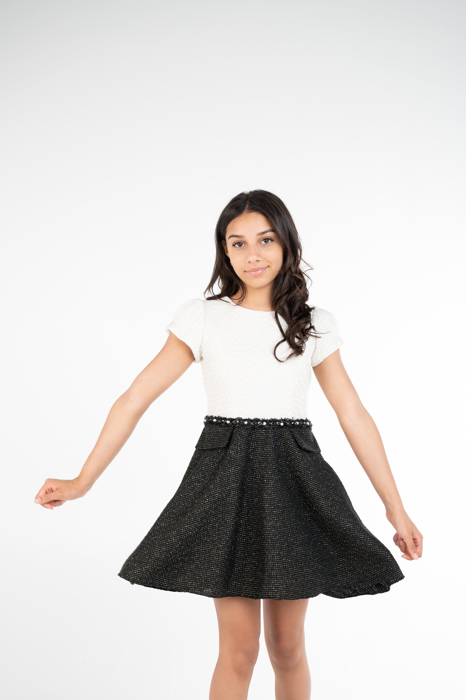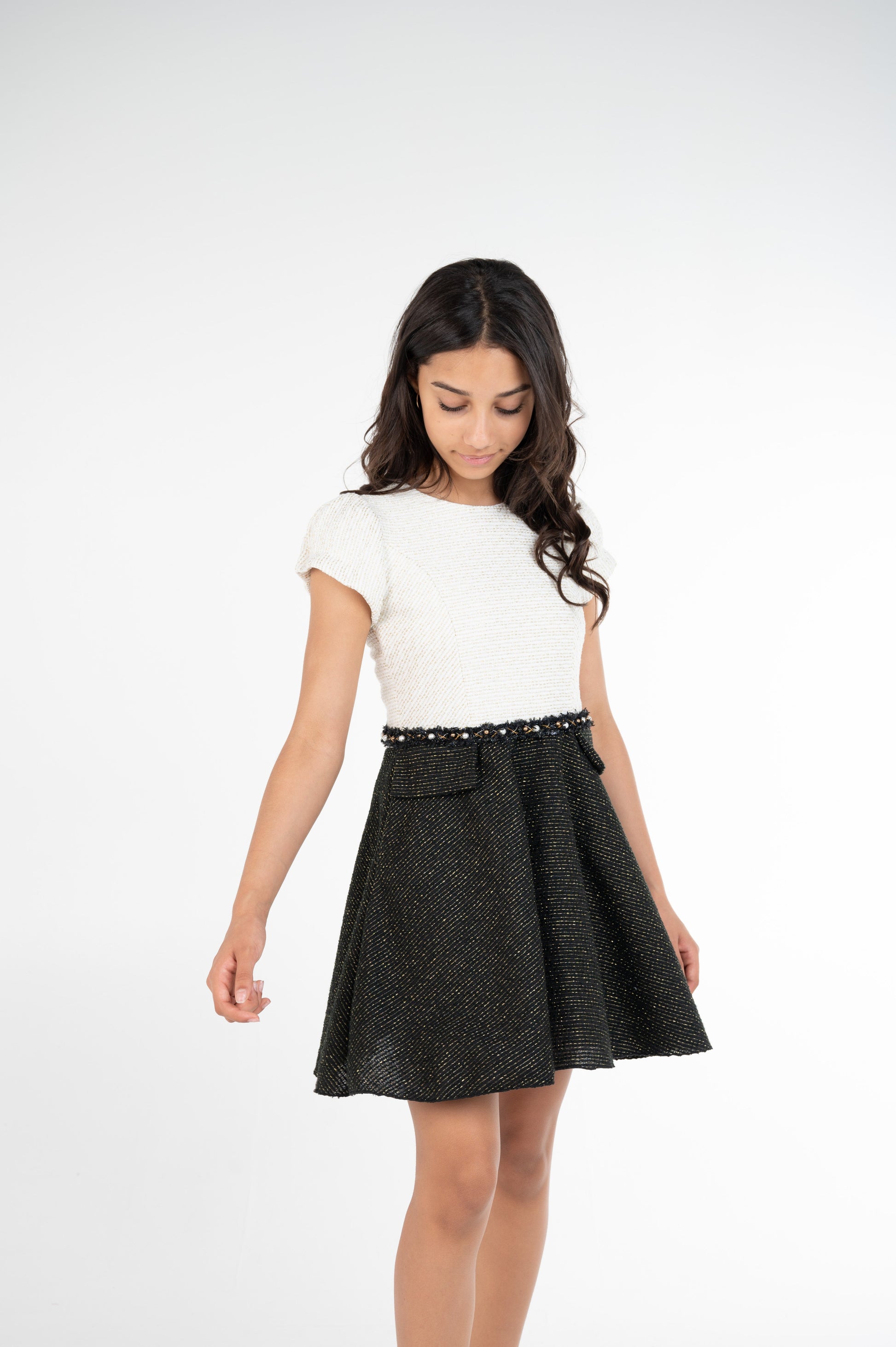 - Zoe "Tori" metallic knit tweed dress with pockets and pearlescent beads along the waist