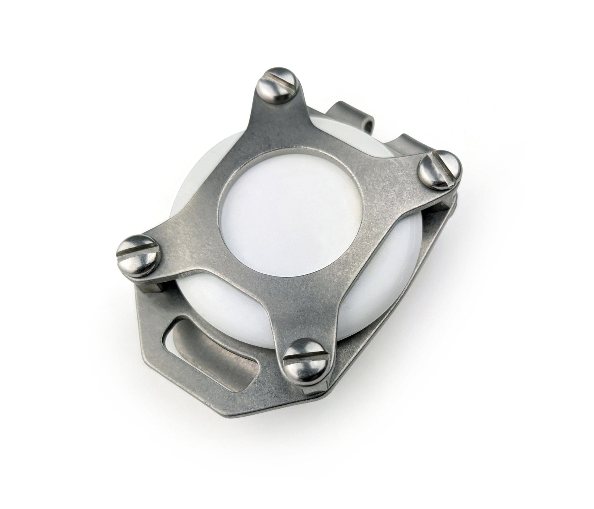A stainless steel shell provides impact and crush protection, and it's tumbled finish hides the wear and tear of everyday use. Customize with paracord for a lanyard to tether wallets, keys or anything else you want to keep a close eye on.