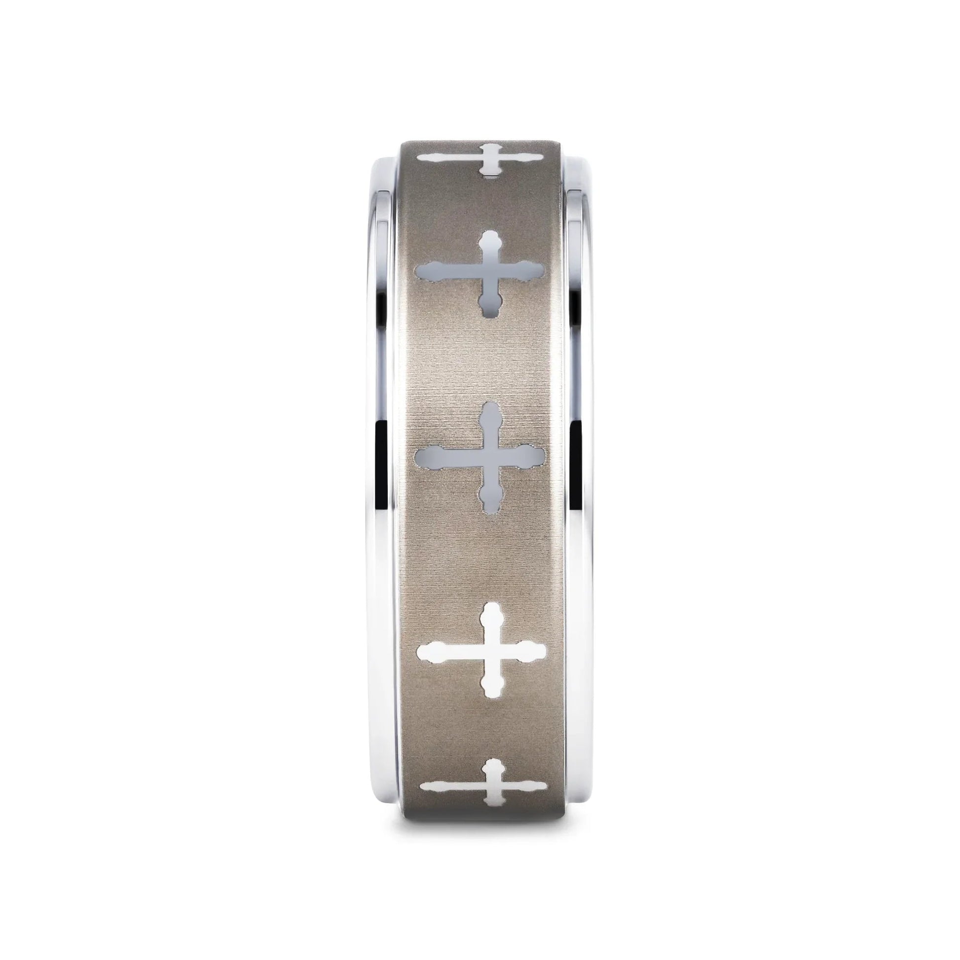 TRINITY Raised Center with Engraved Crosses Men's Tungsten Wedding Band – 8mm
