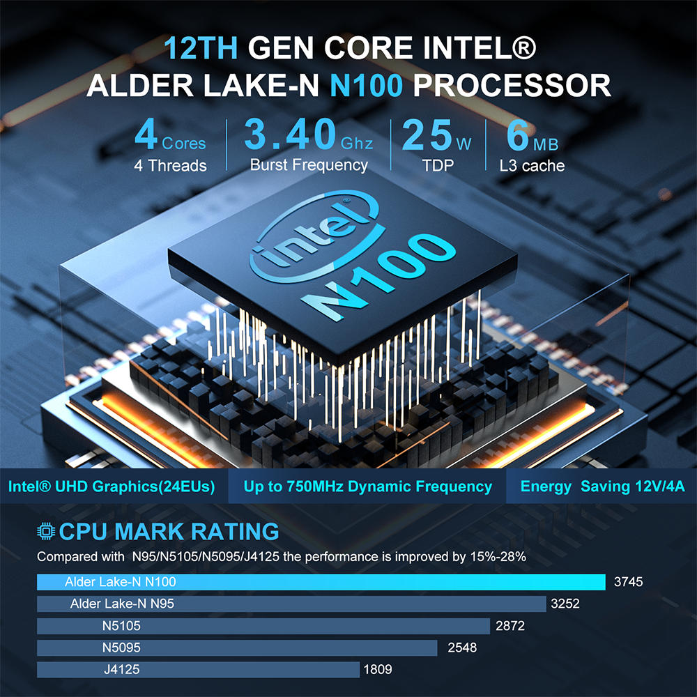 1 * Mini PC, Intel N100, 4-core 4-thread, Intel UHD Graphics, 8GB DDR4 RAM (WiFi + Bluetooth)