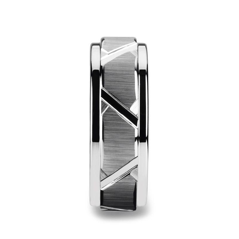 VESTIGE Tungsten Ring with Triangle Angle Grooves and Raised Center - 8mm