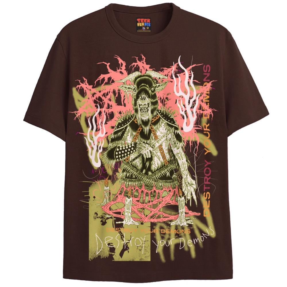 BLACK + BROWN + DARK GREEN + GREEN - WAR GOAT - super soft and comfy short sleeve graphic t-shirt.