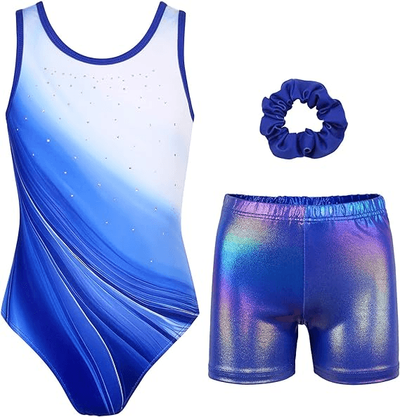 Our White-Blue Diamond Gymnastics Leotard Set is perfect for both practice and competition. Designed with comfort and style in mind, this set ensures your young gymnast performs at her best while looking elegant