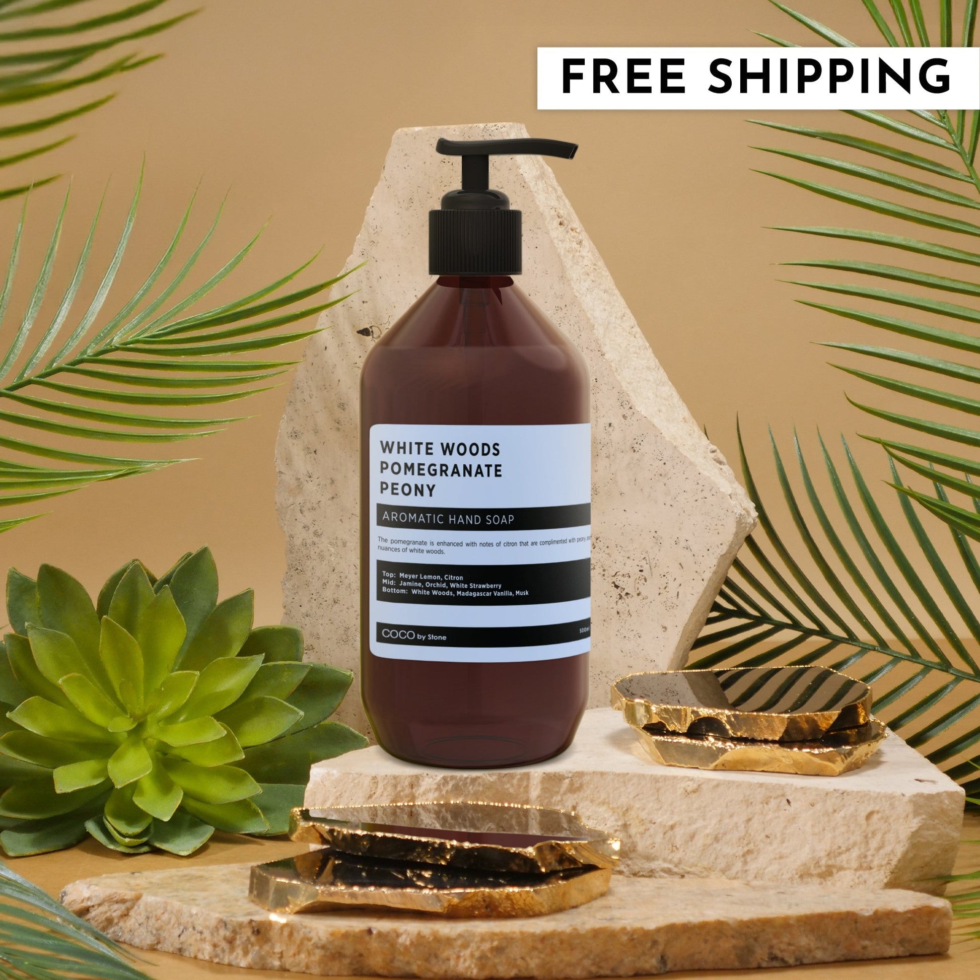 EXPERIENCE THE LUXURIOUS CLEANSING POWER OF COCO BY STONE AROMATIC HAND SOAP. INFUSED WITH THE REFRESHING ESSENCE OF COCONUT AND SUBTLE FLORAL NOTES, THIS SOAP NOT ONLY LEAVES YOUR HANDS FEELING CLEAN AND MOISTURIZED BUT ALSO ENVELOPS YOU IN A DELIGHTFUL AROMA. ELEVATE YOUR DAILY ROUTINE WITH A TOUCH OF SOPHISTICATION AND INDULGENCE—PERFECT FOR ANY BATHROOM OR KITCHEN. TREAT YOURSELF TO THE ULTIMATE SENSORY EXPERIENCE!
