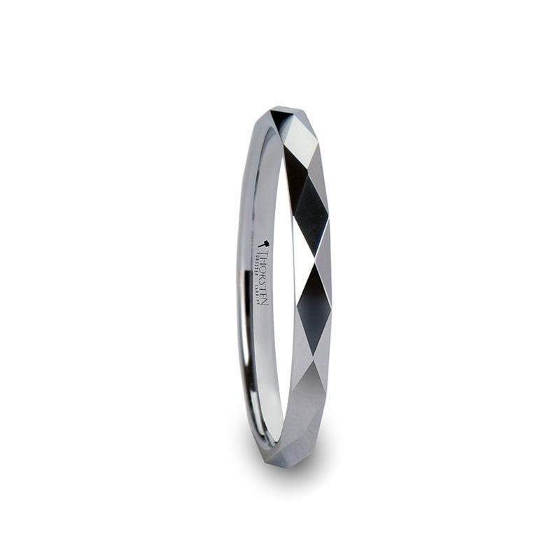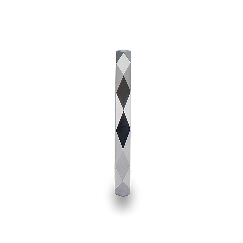 WICHITA Diamond Faceted White Tungsten Ring for Her - 2mm