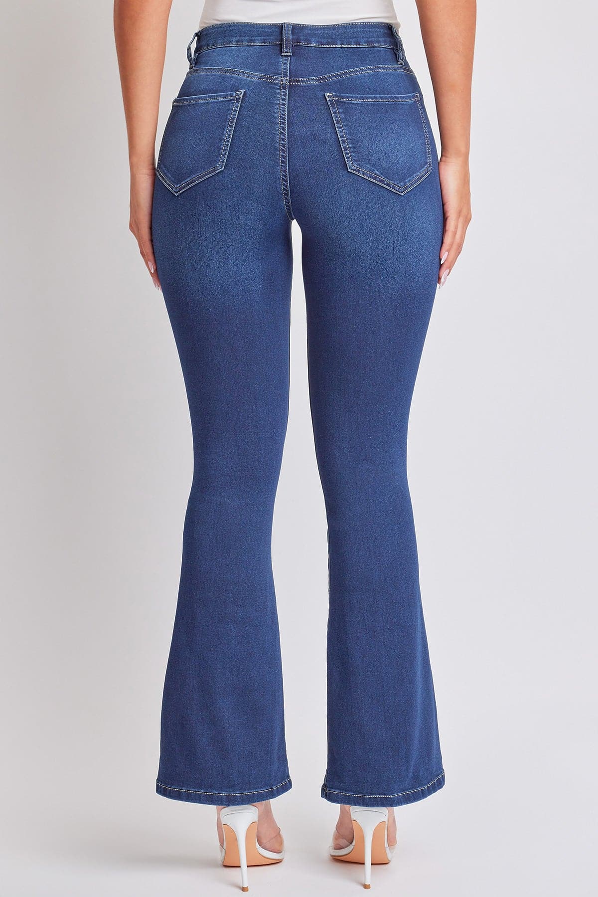 Our Women’s HyperDenim High Rise Flare Jeans With Regular Inseam will have your butt looking lifted, shifted, and higher than a ceiling. Part of our HyperDenim line, this flared bell-bottom jean is constructed of our super stretchy denim that is buttery soft to the touch, and features a ultra-flattering high waisted fit that hugs the hips to show off your natural curve. Pair with a baby graphic tee and tennies for a throwback ‘00s moment, or a tucked muscle tee with heels for a modern chic look.