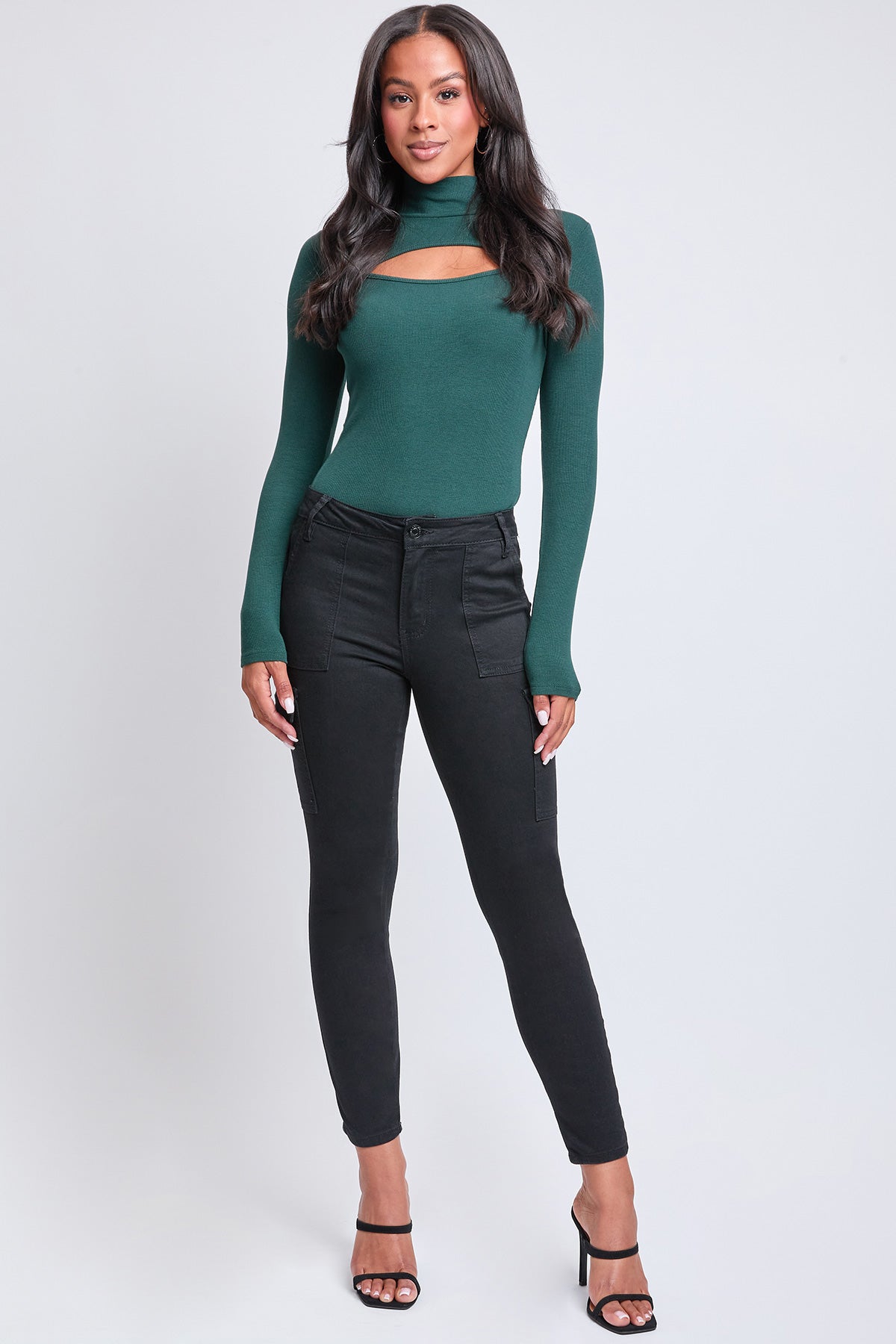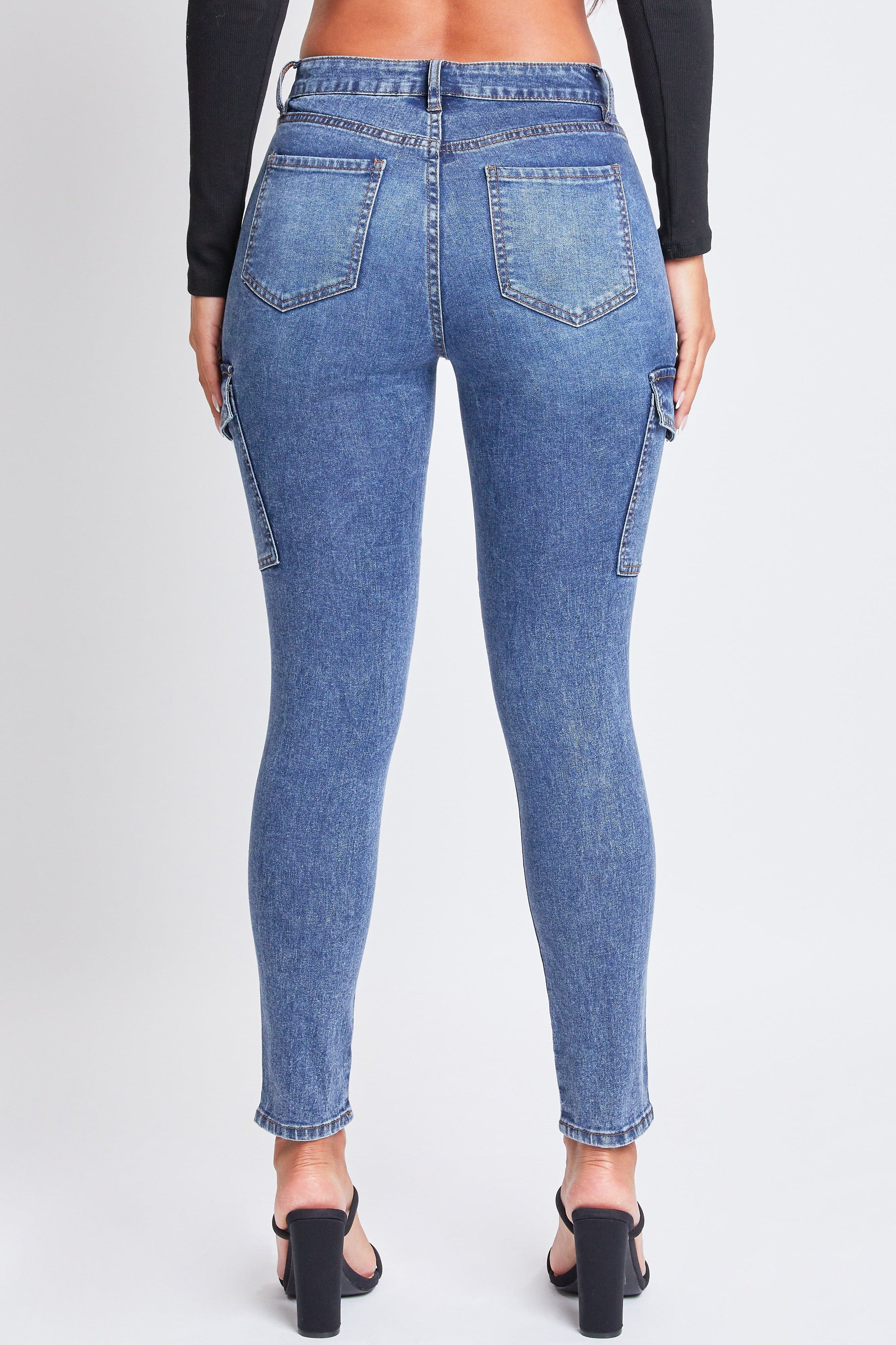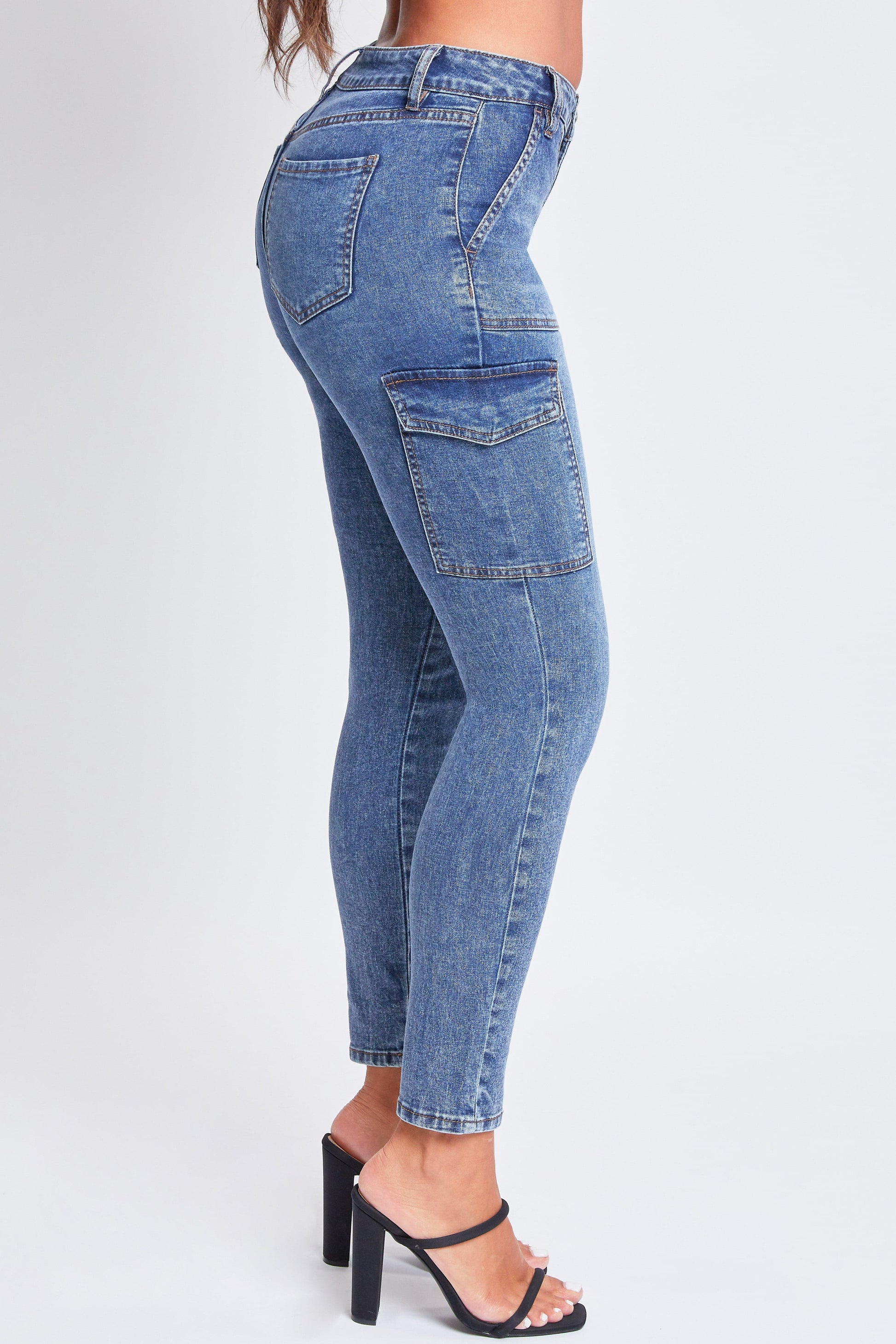 Dive into your chill era with our Women’s High Rise Skinny Cargo Jeans. Constructed with stretchy midweight denim, this high-waisted jean features a skinny silhouette that is fitted from hip to hem – perfect for a flattering look that shows off your every curve. Detailed with vintage-inspired rectangular patch pockets at the front, snap button cargo pockets at the side, and a stretch waist that will have you feeling comfortable all day long. Style with your favorite tee and sneakers for a casual look, or swap in some heels for something more daring.
