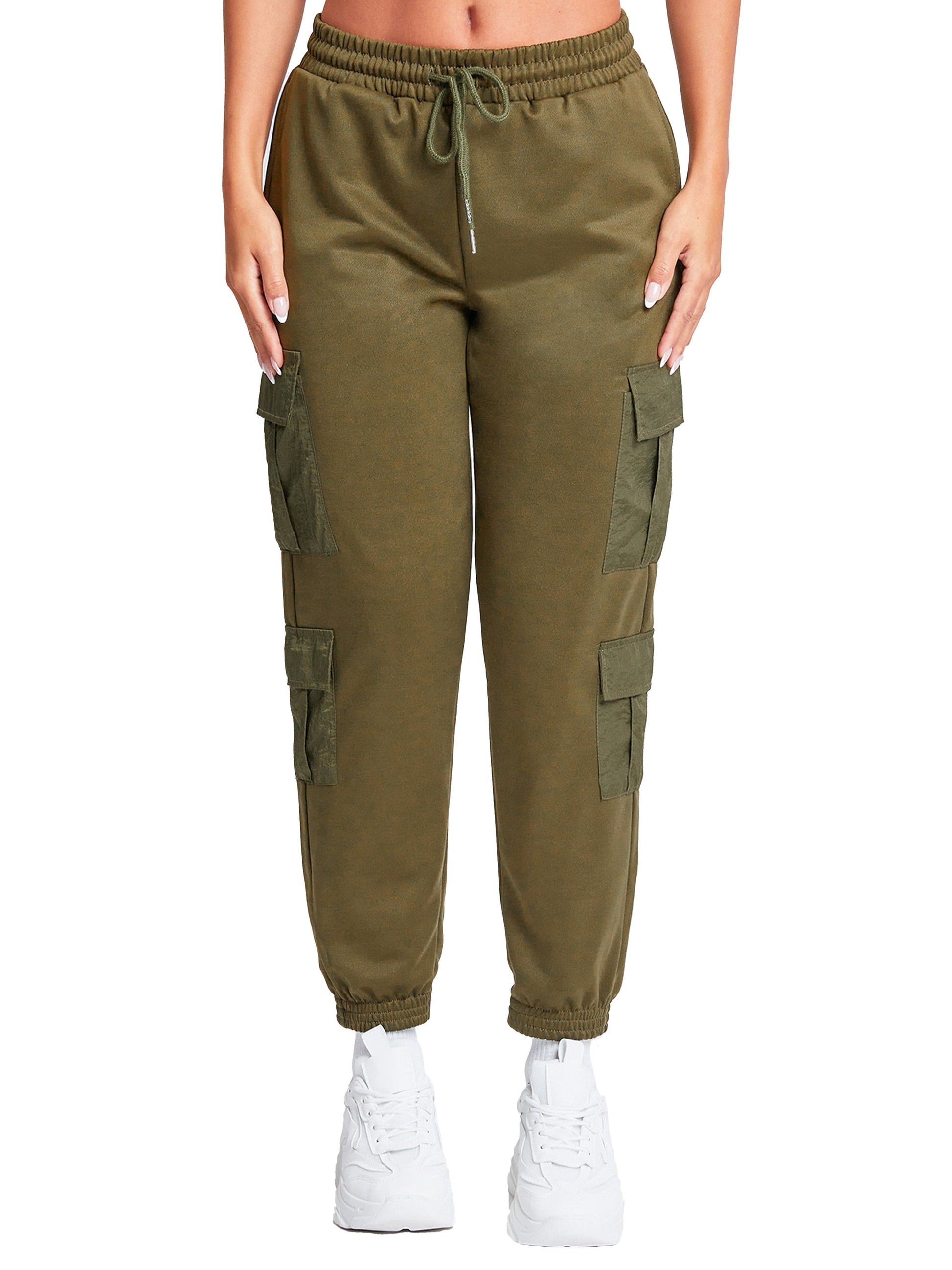 Keep it cute and casual in our Women’s Joggers with Nylon Pockets. These trendy mixed-media joggers are constructed with a soft, midweight polyester fabric and feature pleated flap cargo pockets made of parachute-style material. These lounge pants feature an elastic waist with drawstring closure, inseam front pockets, and an elastic hem. Style with a fitted tank and sneakers for an on-trend sporty vibe.