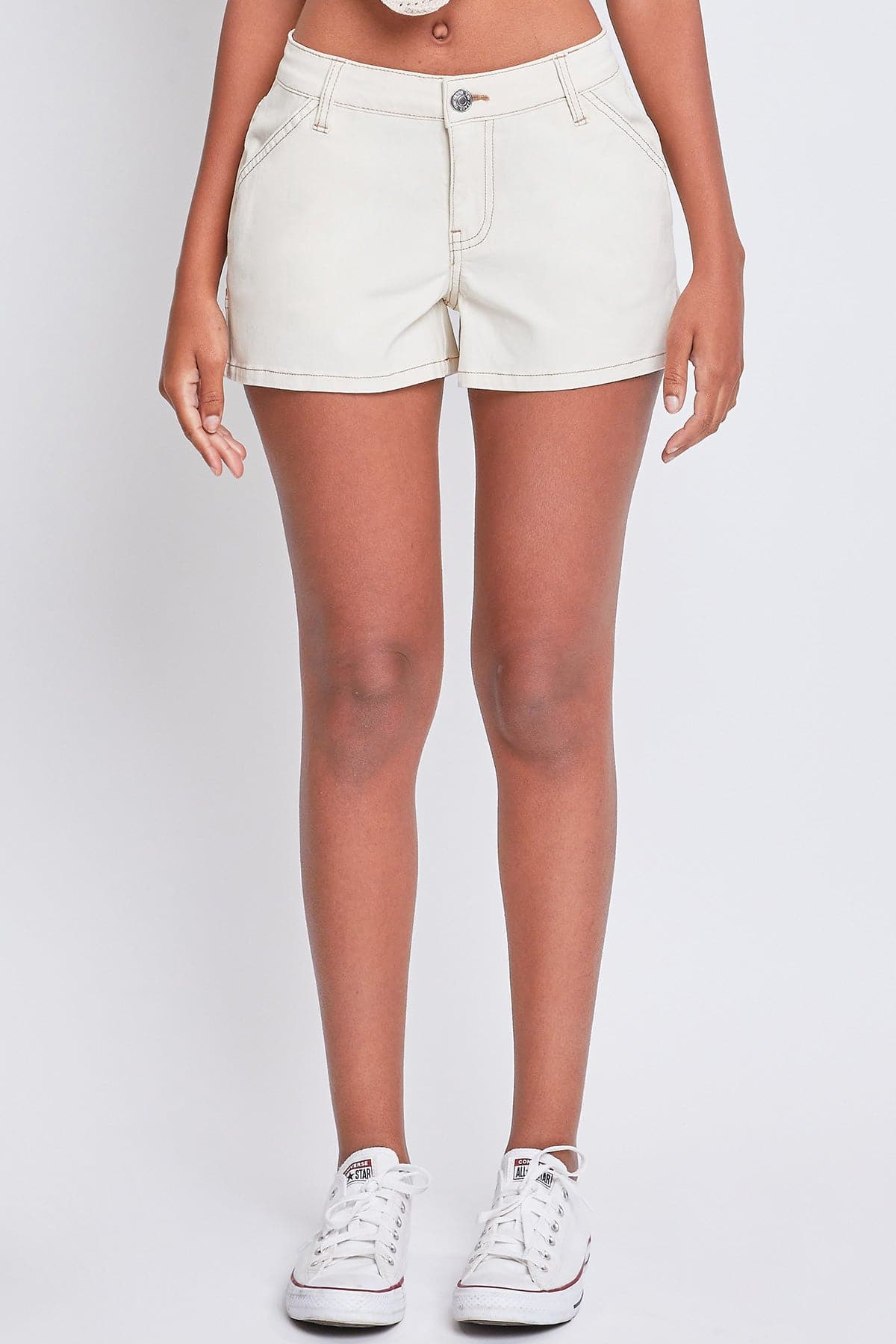 Add some trendiness to any Summer ‘fit with our Women's Mid Rise Carpenter Short! These comfy mid-rise twill shorts feature contrast stitching and carpenter details such as large pockets and a hammer loop. These shorts are designed to have a slightly relaxed fit for a more casual and cool look. Also featuring a 1 button closure with zipper and belt loops. Available in a wide variety of colors to choose from. Style these with a cute crop top and sneakers for an easy-going outfit!