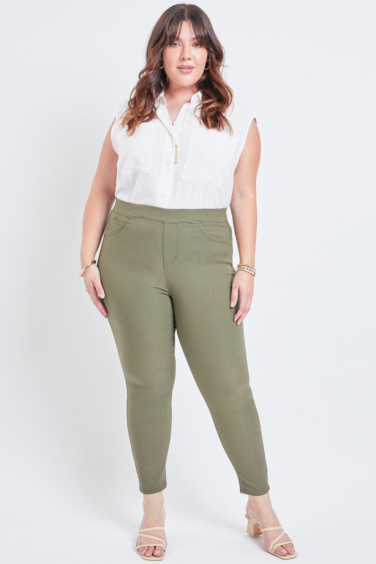 Look effortlessly chic and sleek with our Women Plus Size Mid-Rise Hyperstretch Jegging. Designed to look like jeans with the comfort and stretch of leggings. Featuring our signature WBB heart-shaped butt stitching and uniquely crafted pockets to naturally contour and lift your bum. These jeggings are not only easy to move around in, but they also look clean and polished, making them a great wear-to-work option. Pair these with a dressy blouse and a light layering piece for the office, or front tuck a white tee and pair with sneakers for a put-together on-the-go weekend look!