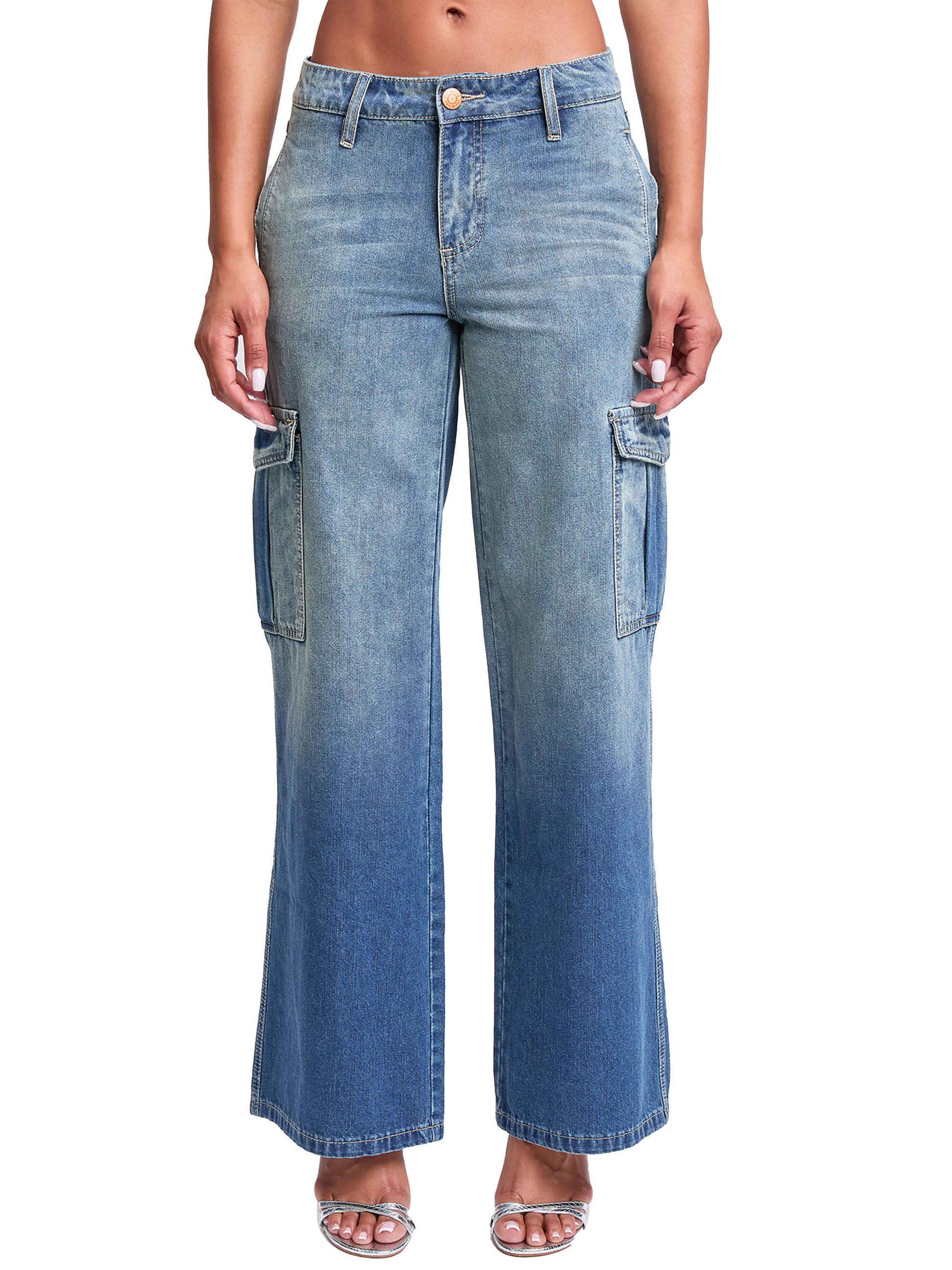 Designed with a wide leg silhouette, these jeans offer a fashion-forward look that combines classic cargo elements with modern trends. The cargo pockets with snap closures add a touch of utility-inspired charm and provide practical storage for your essentials.
