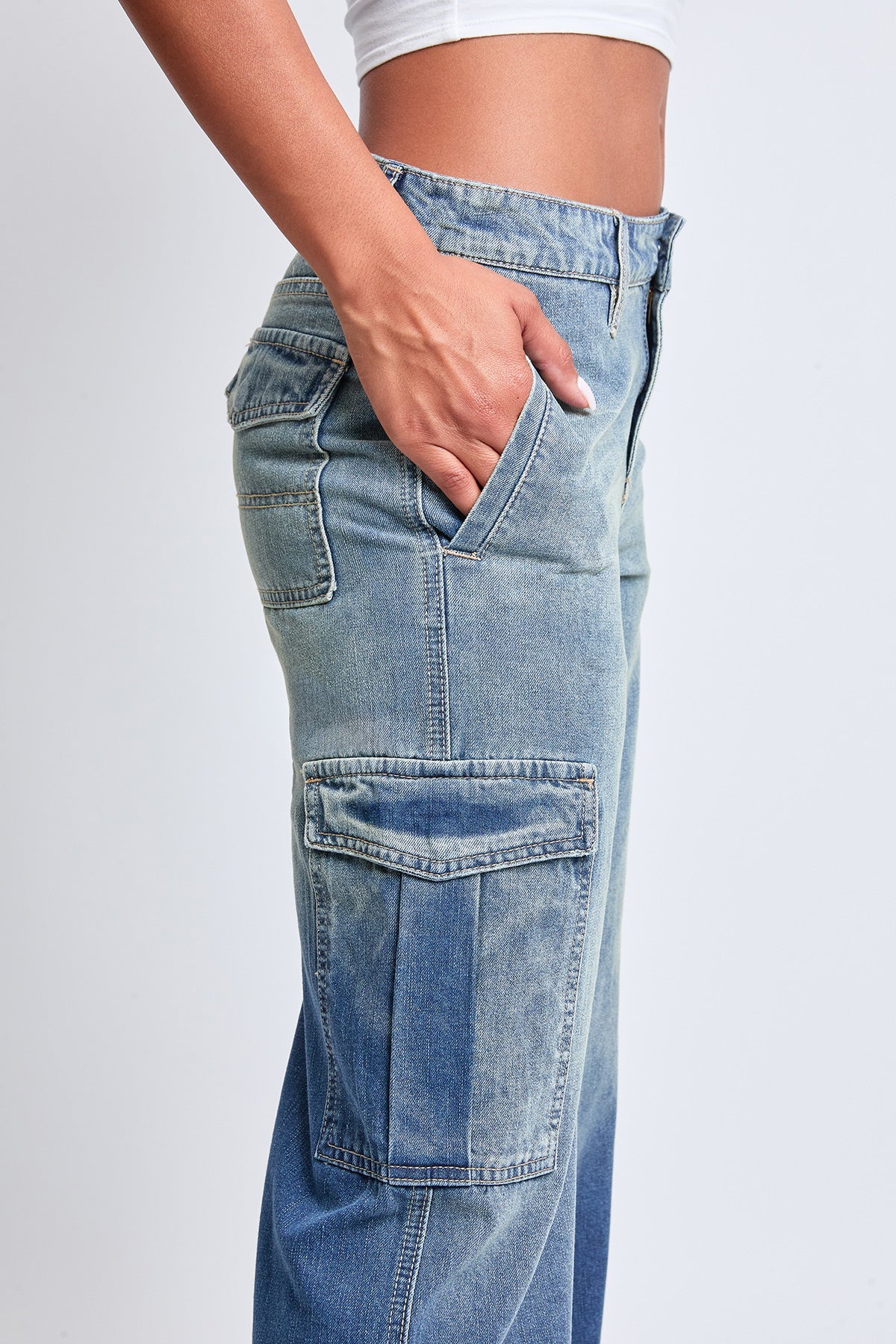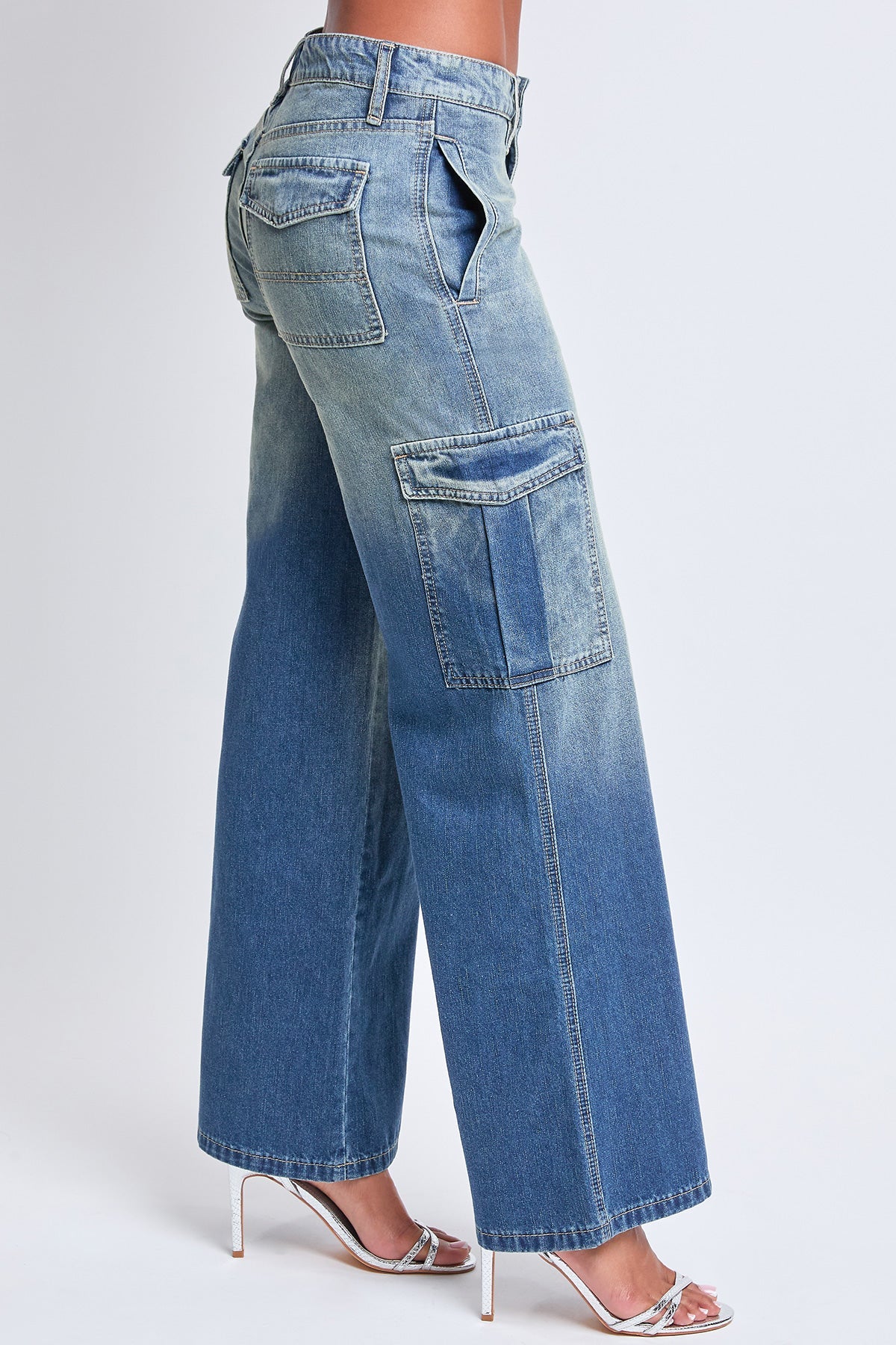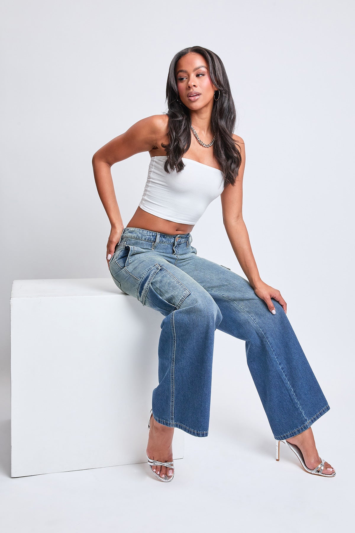 Women's Relax Fit Cargo Wide Leg Jeans by YMI Jeans, where comfort meets style for the modern woman's wardrobe. Crafted with meticulous attention to detail, these jeans redefine casual chic with their relaxed fit and functional design.