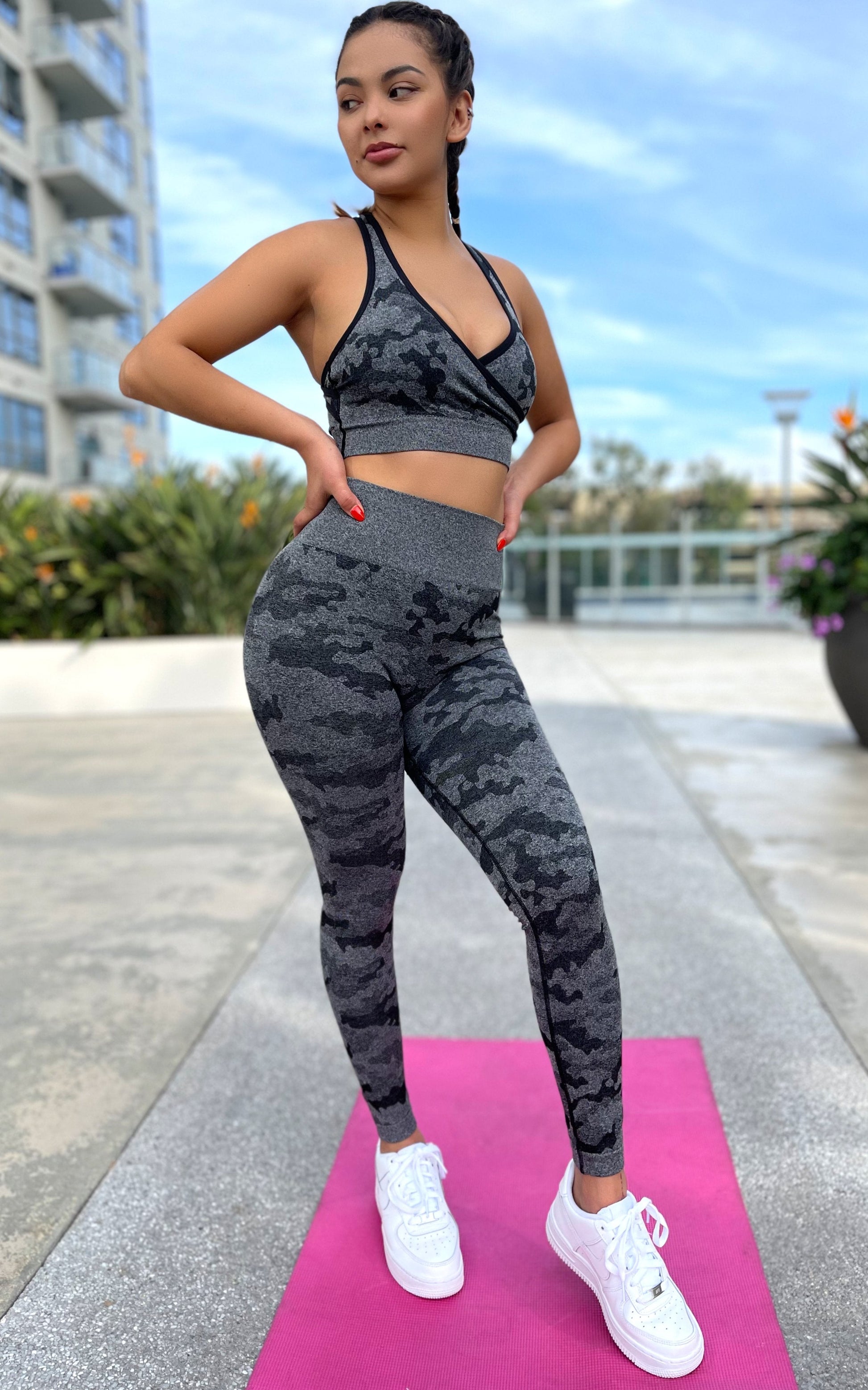 Wonderflex: Seamless Workout Outfit in Black Camouflage