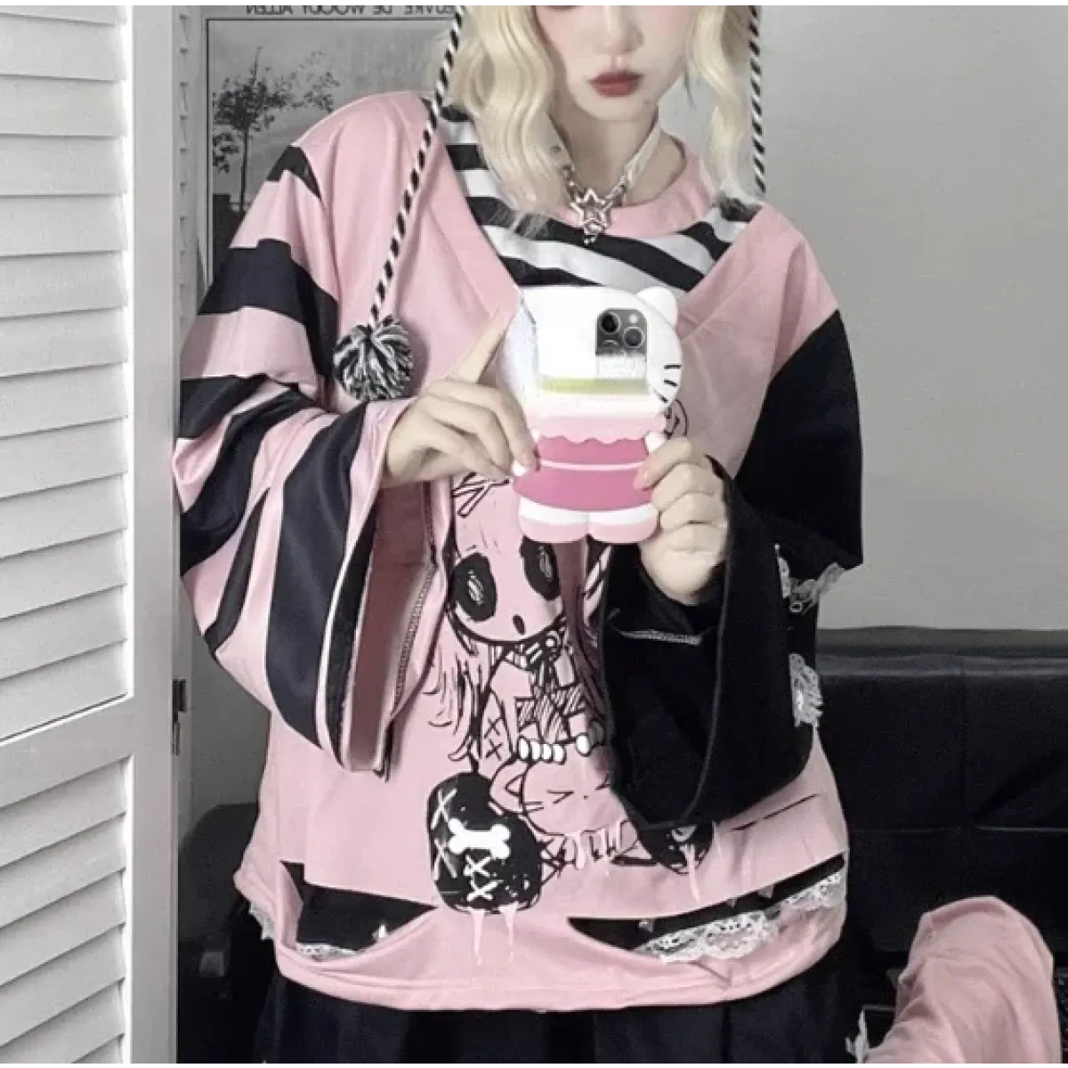 Y2K Japanese Cartoon T-Shirt – Loose Grunge Fairycore Kawaii Top