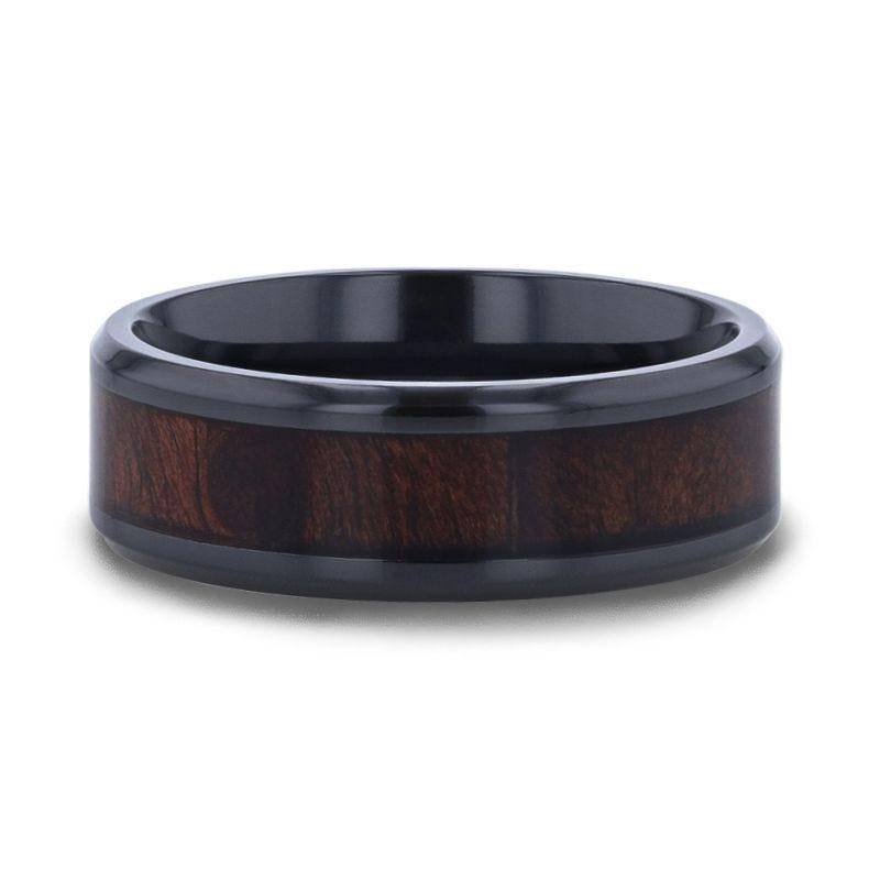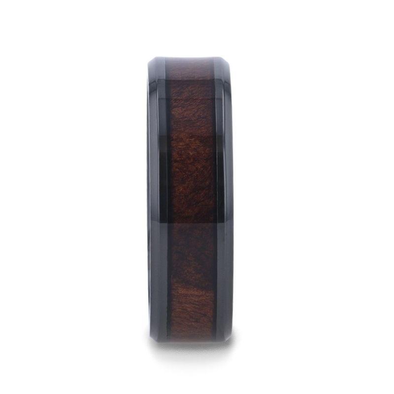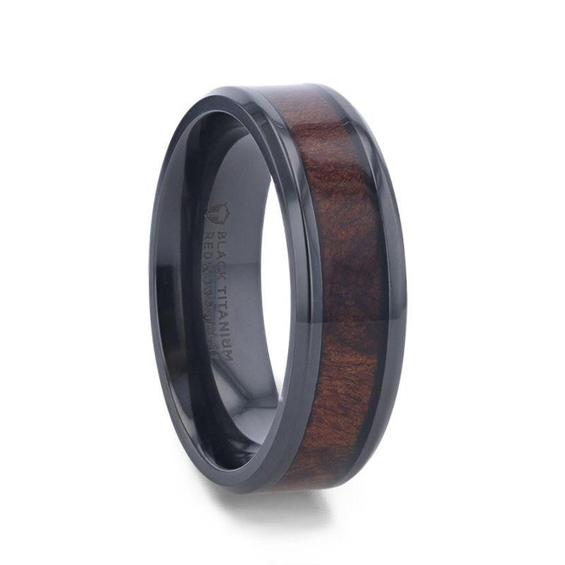 YOSEMITE Redwood inlaid Clear Polished Coated Titanium Men's Wedding Band With Polished Beveled Edges - 8mm