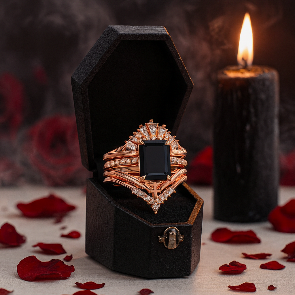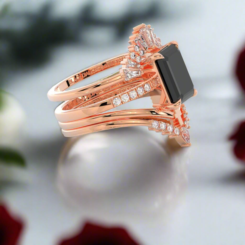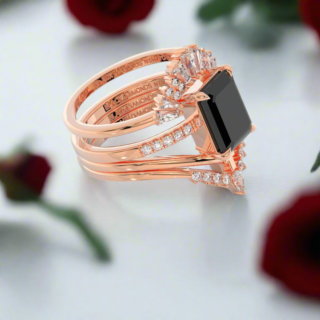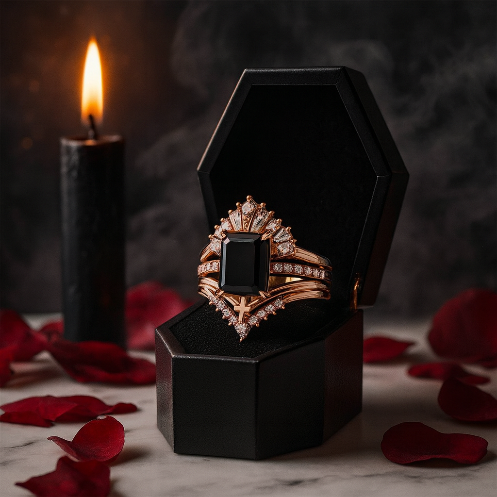You Are Worth It- Black Emerald Cut Diamond Gothic Promise Ring Set