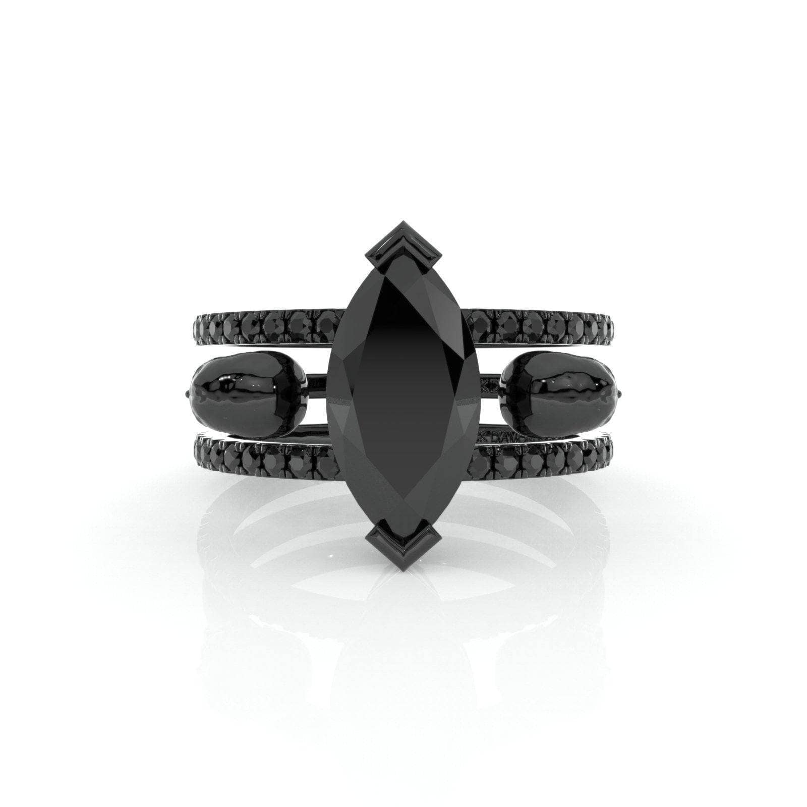 You & Me Rings - 14K Rose Gold Gothic Wedding Rings