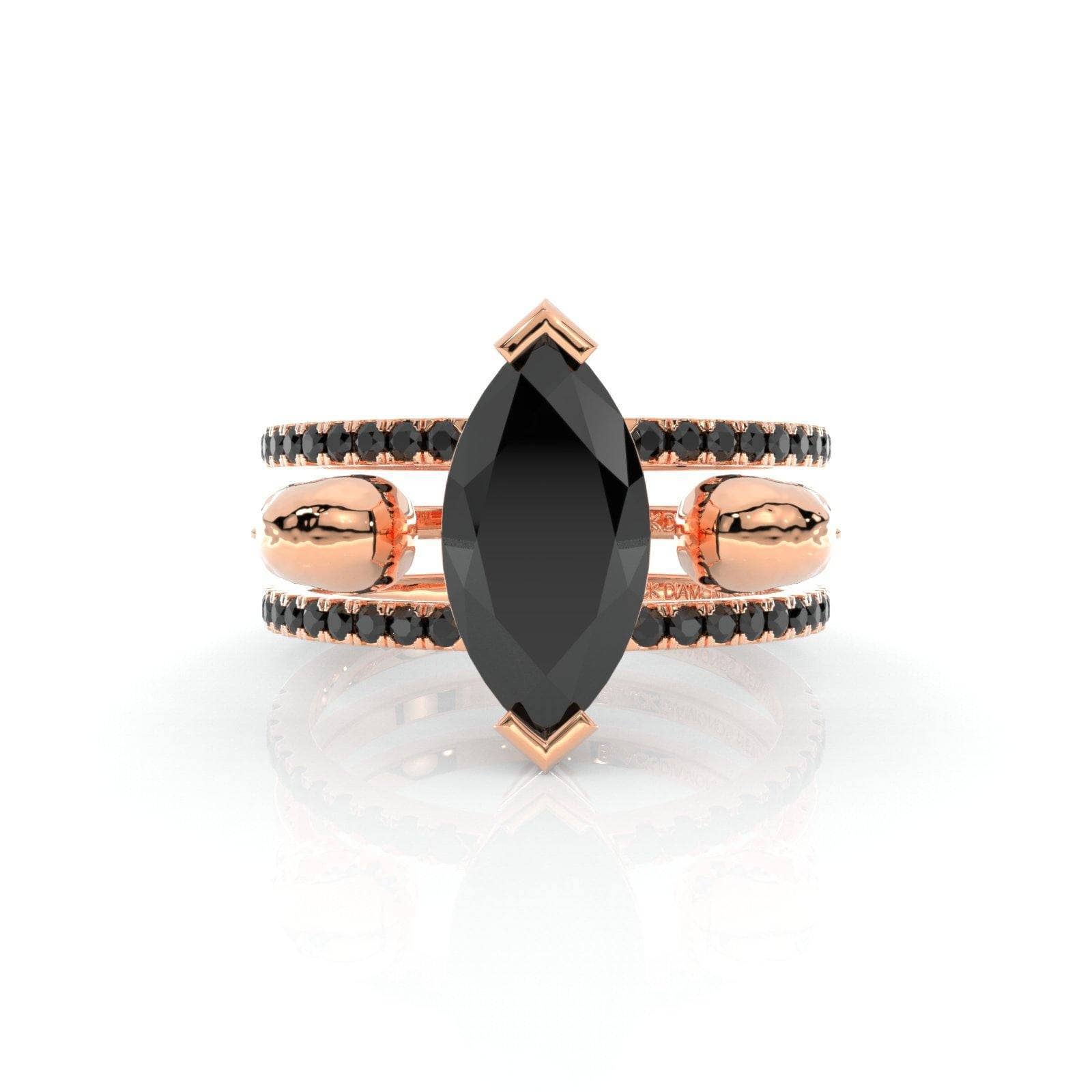 You & Me Rings- 14K Rose Gold Gothic Wedding Rings